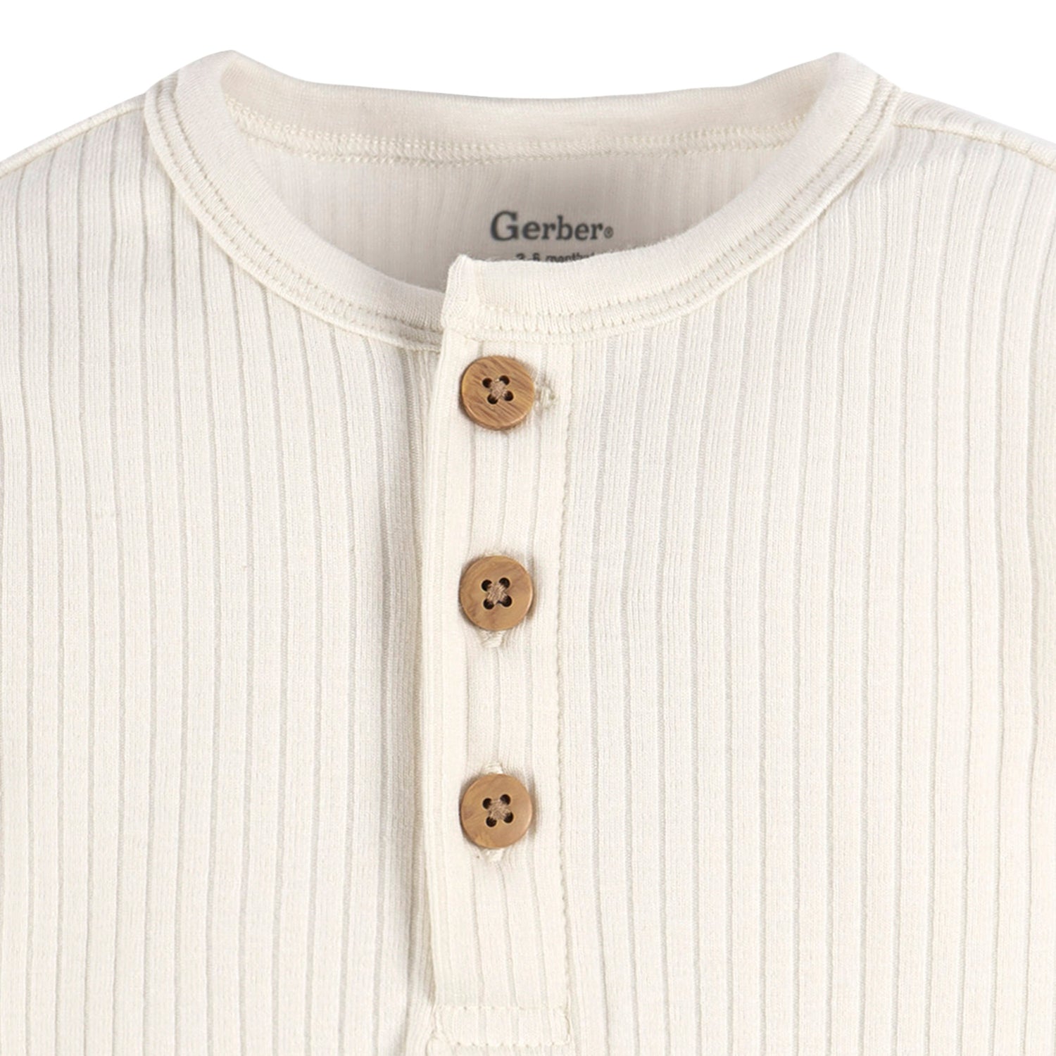 La parte superior abotonada de madera sintética, añade un toque clásico, mientras que la comodidad acanalada en el cuello y las aberturas de las piernas garantizan un ajuste cómodo para tu pequeño.