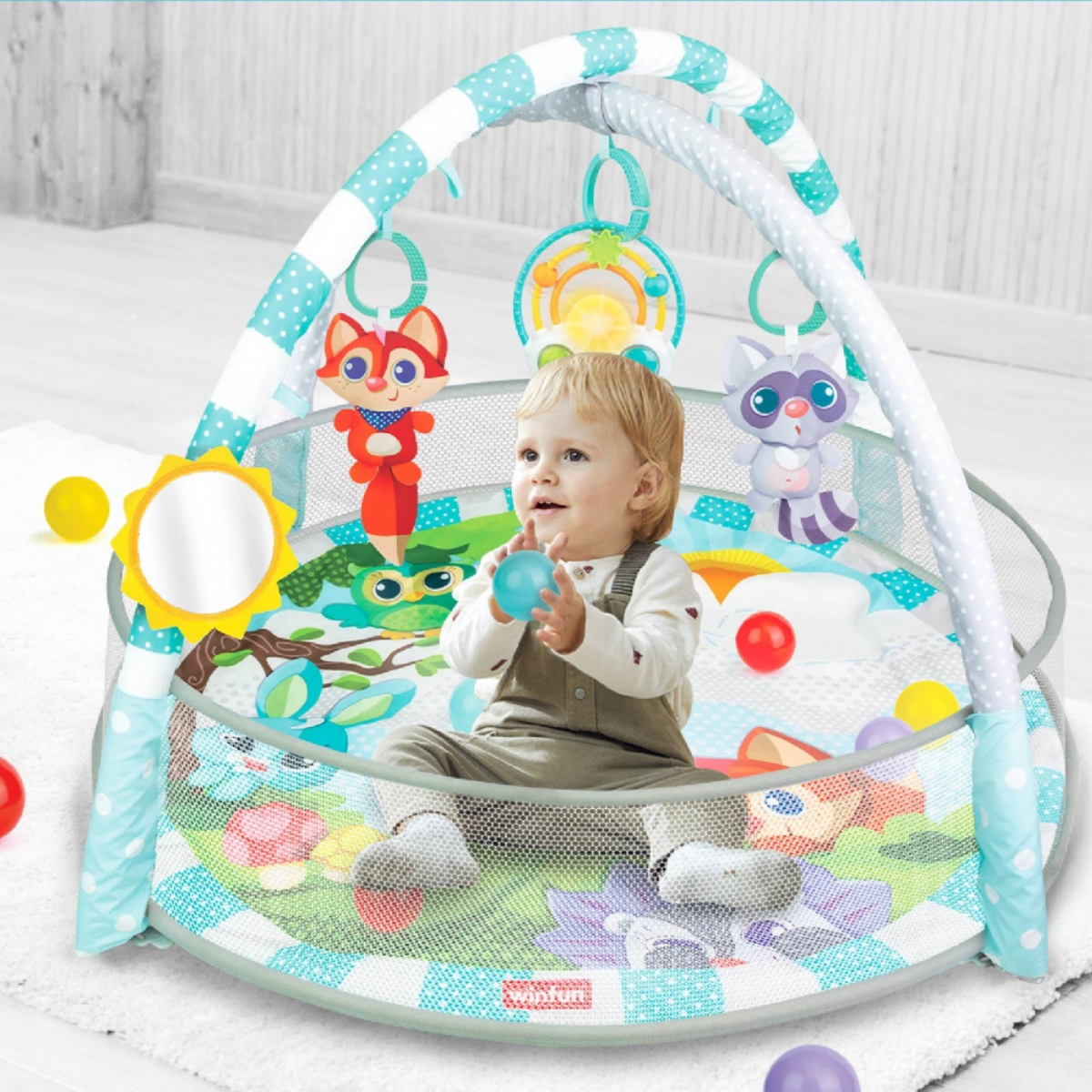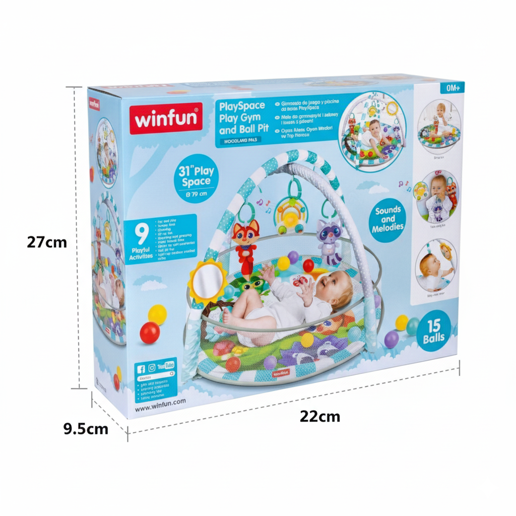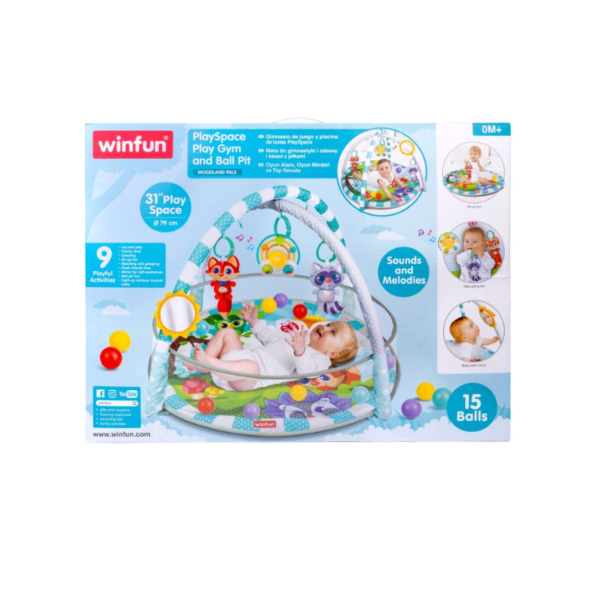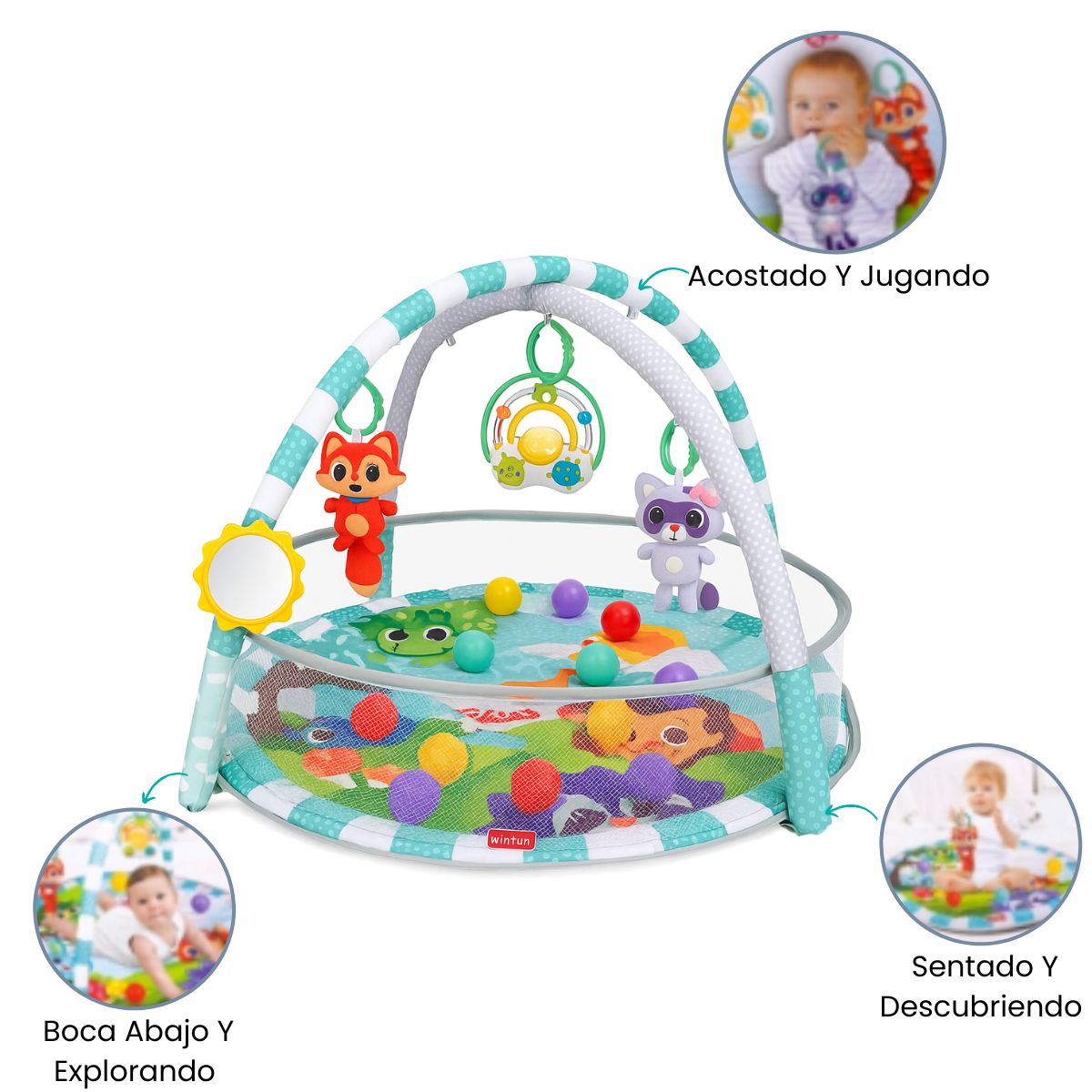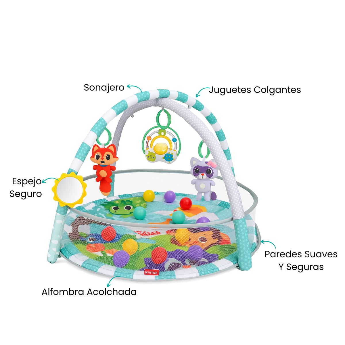 El gimnasio de actividades Winfun 2 en 1 crece con tu bebé ofreciendo diversión en cada etapa de desarrollo: desde los primeros movimientos acostado, hasta el juego activo sentado o dentro de su mini piscina de pelotas. Su diseño colorido y sus personajes animales lo convierten en el espacio perfecto para descubrir, moverse y explorar con seguridad.