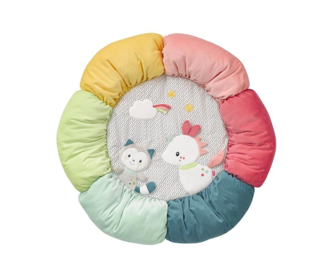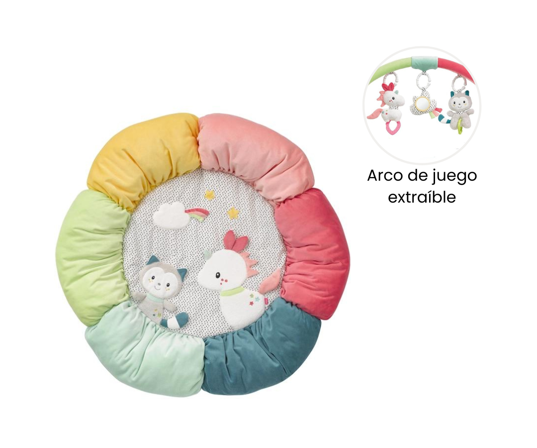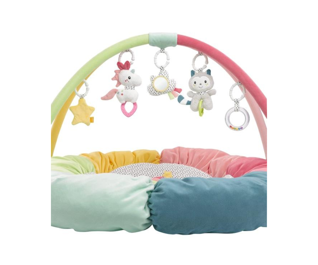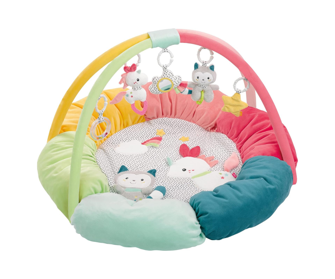Aventúrate en el colorido mundo del unicornio y el gato. Descubre un viaje sensorial que estimula los sentidos de tu pequeño mientras juega. Con 5 juguetes removibles que promueven el agarre y el tacto, este nido proporciona la comodidad óptima para tumbarse y echarse una siesta gracias a su borde acolchado.