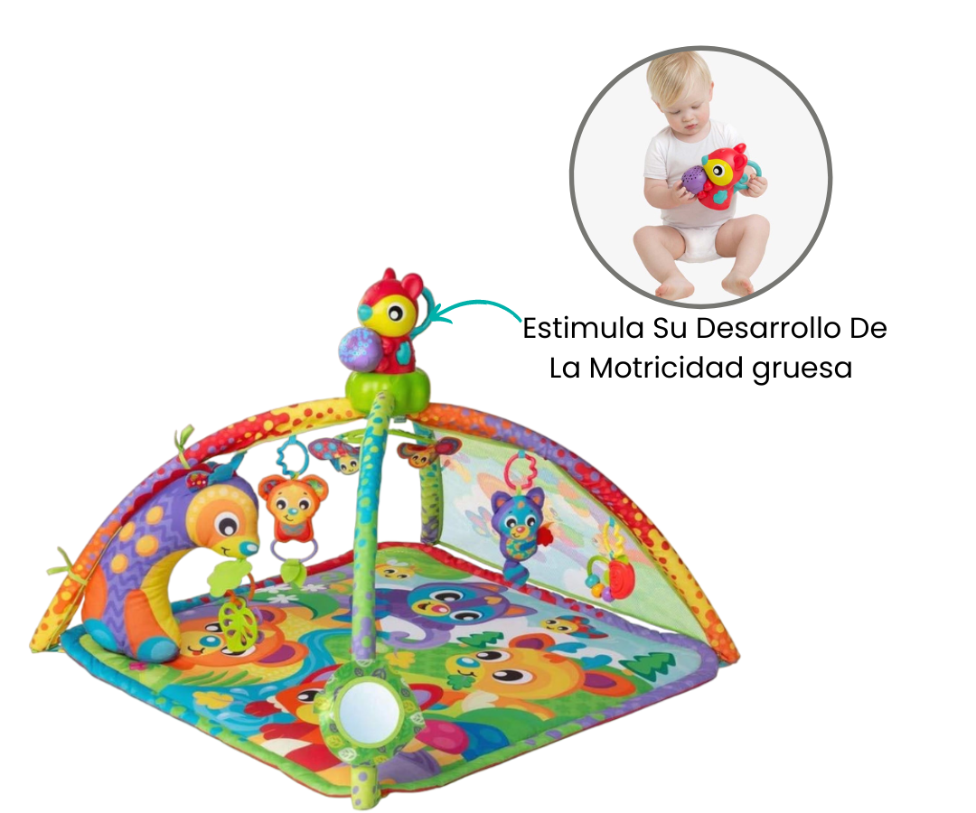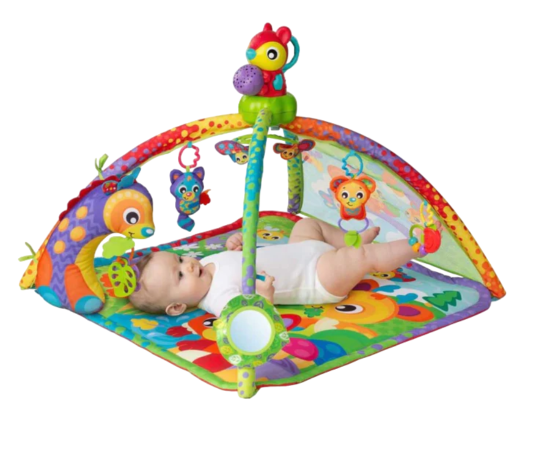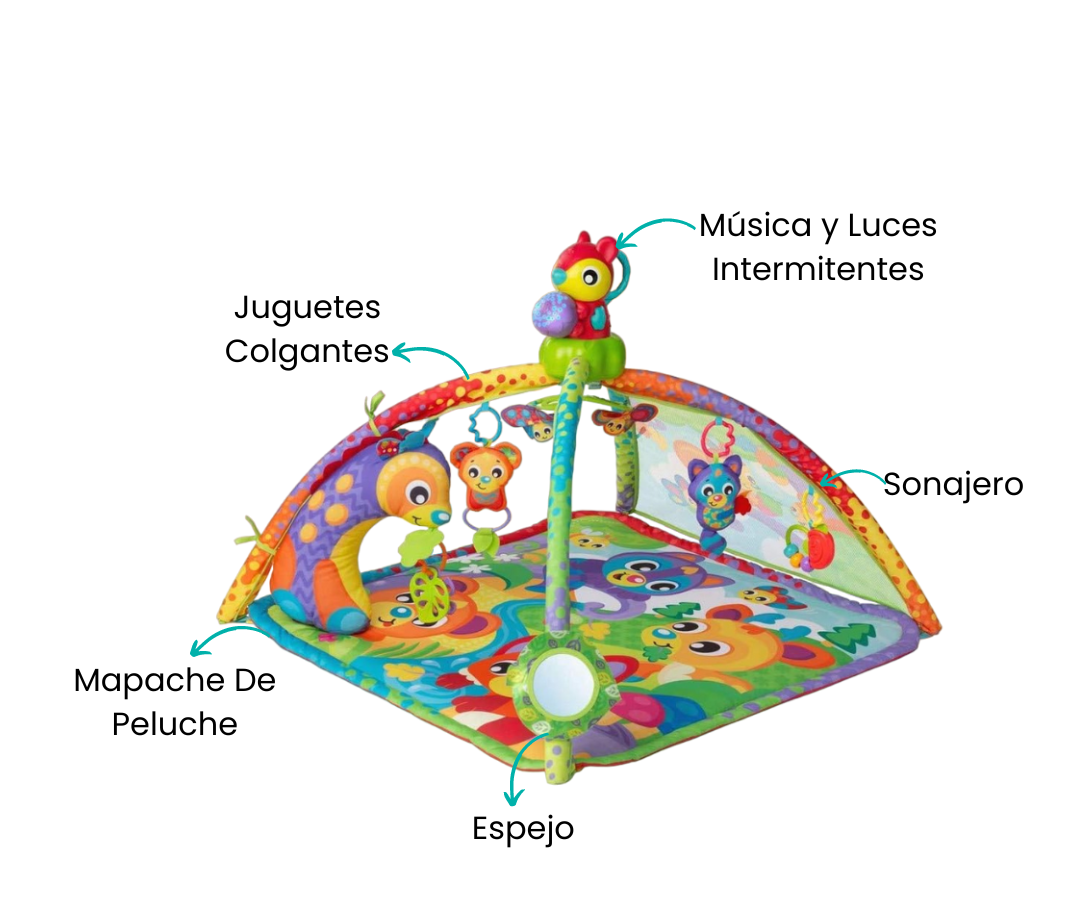 Embárcate en una gran aventura en el bosque con Woodlands Music & Lights Projector Gym para tu bebé. La música, sincronizada con los movimientos del bebé, estimula tanto su audición como su visión. Sumérgete en un mundo de diversión y aprendizaje mientras tu pequeño disfruta de esta experiencia interactiva en su gimnasio.