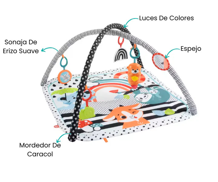 Esta gran colchoneta de gimnasio 3 en 1 es perfecta para jugar con los más pequeños, gracias a su atractivo diseño y materiales seguros de alta calidad. Incluye juguetes interactivos que estimulan los sentidos y el desarrollo motor mientras tu bebé juega, se estira y explora. Ideal para crear momentos de diversión y aprendizaje en familia. ¡Un espacio acogedor para crecer y descubrir juntos!