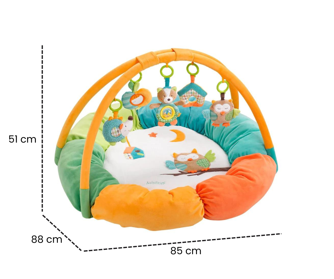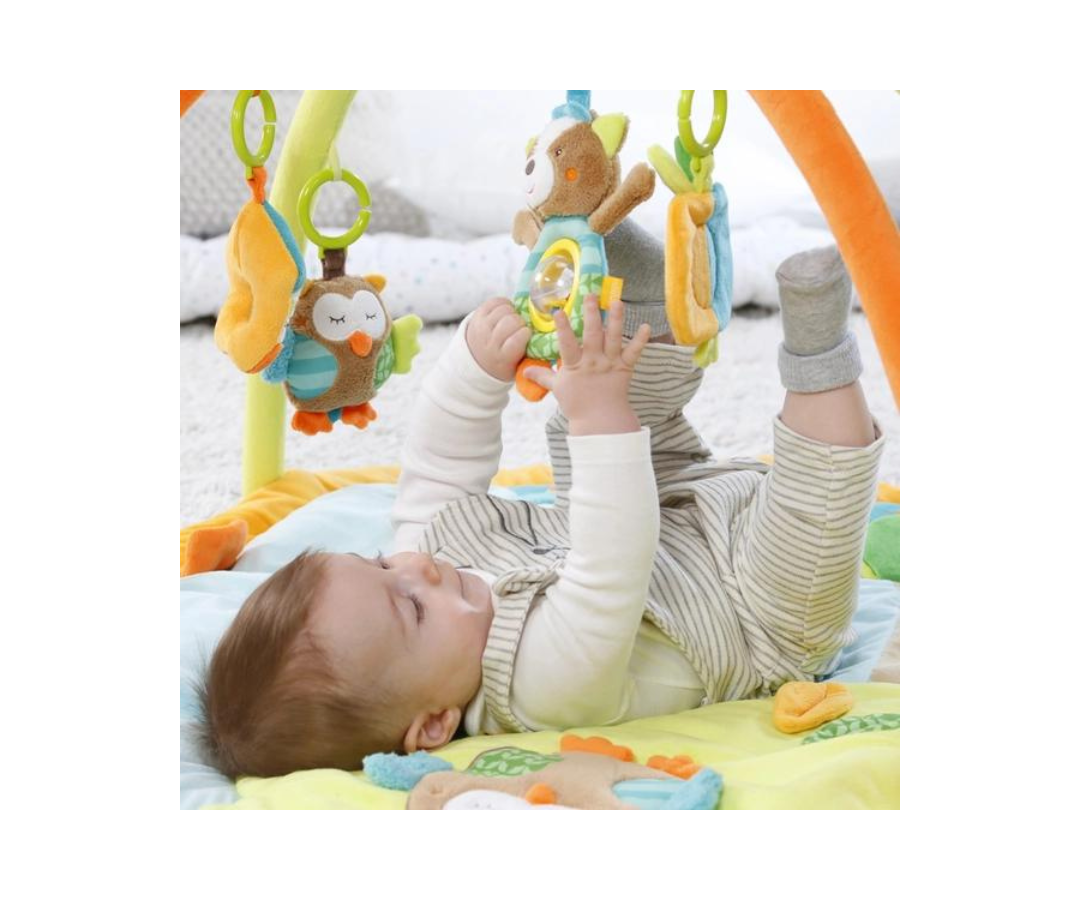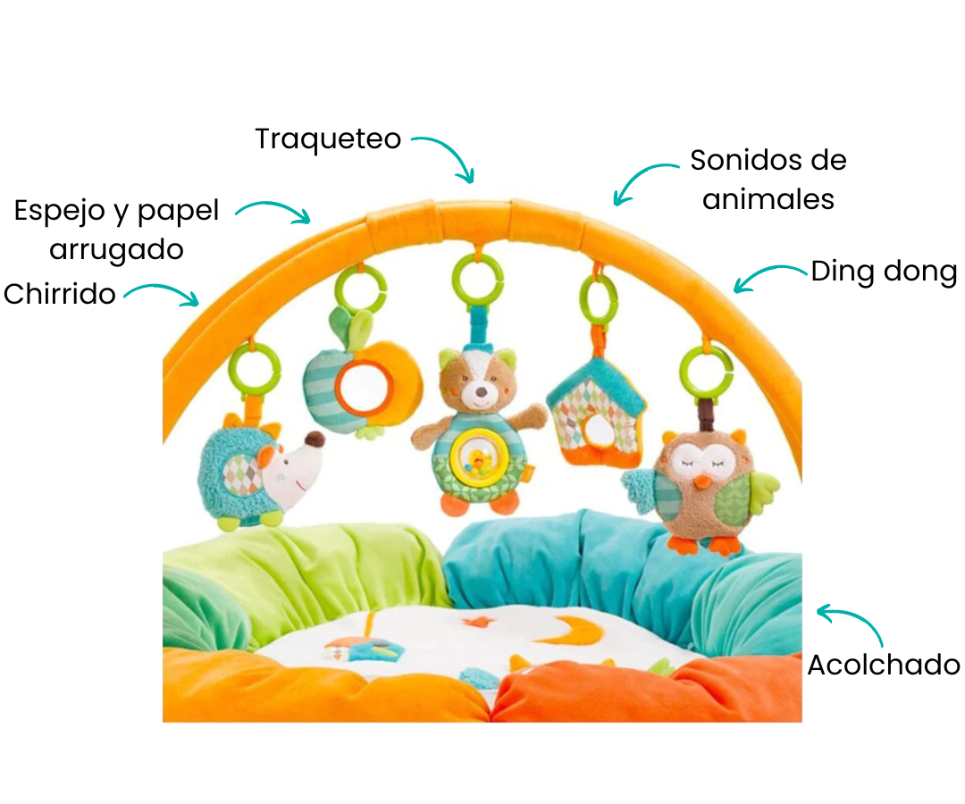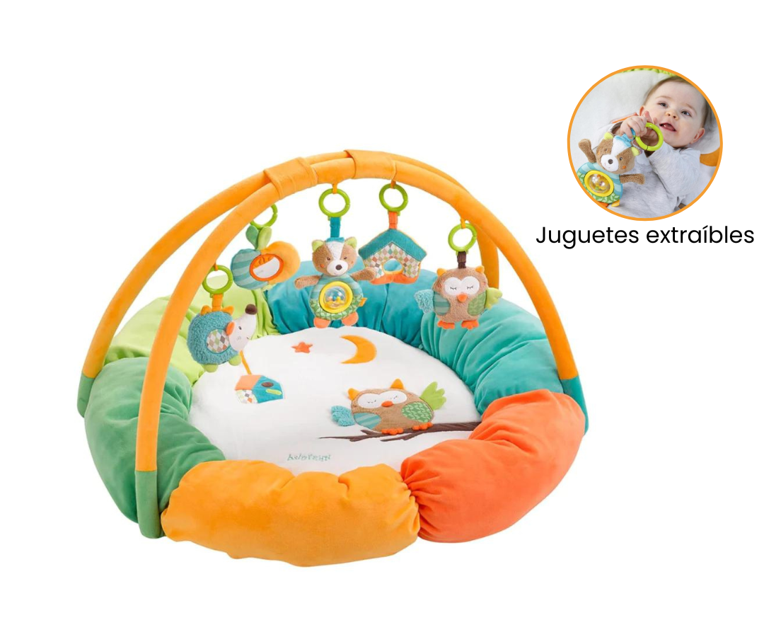 El nido con 5 juguetes extraíbles está fabricado con materiales suaves y asegura la óptima comodidad del bebé gracias al borde acolchado. Los juguetes que cuelgan del arco son fáciles de agarrar por las manitas del bebé, estimulando sus habilidades motoras desde el nacimiento.