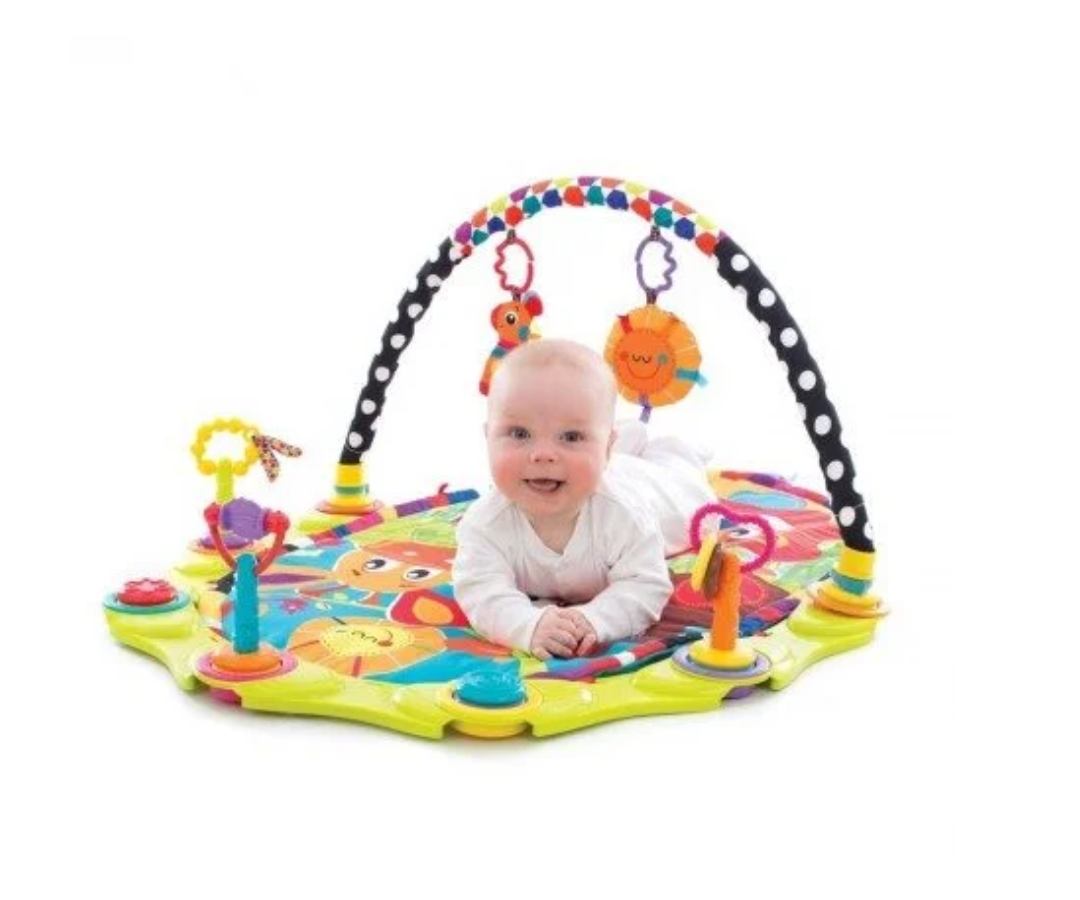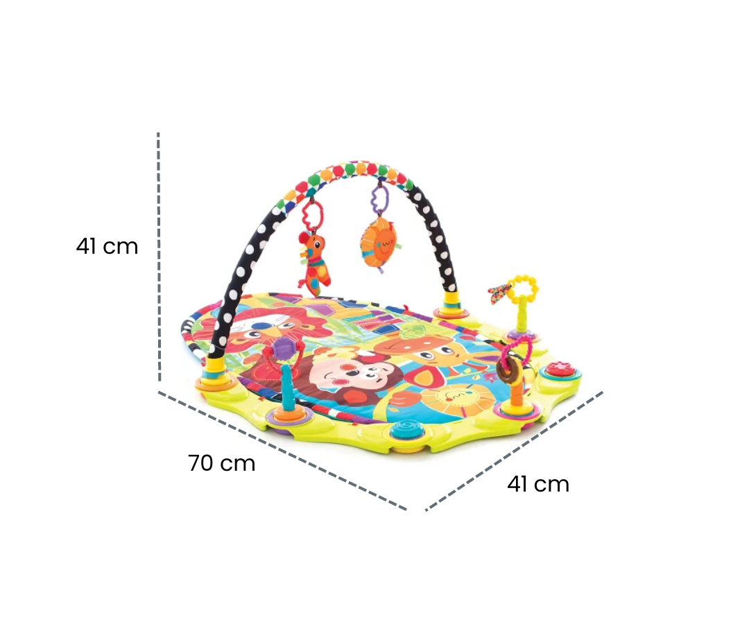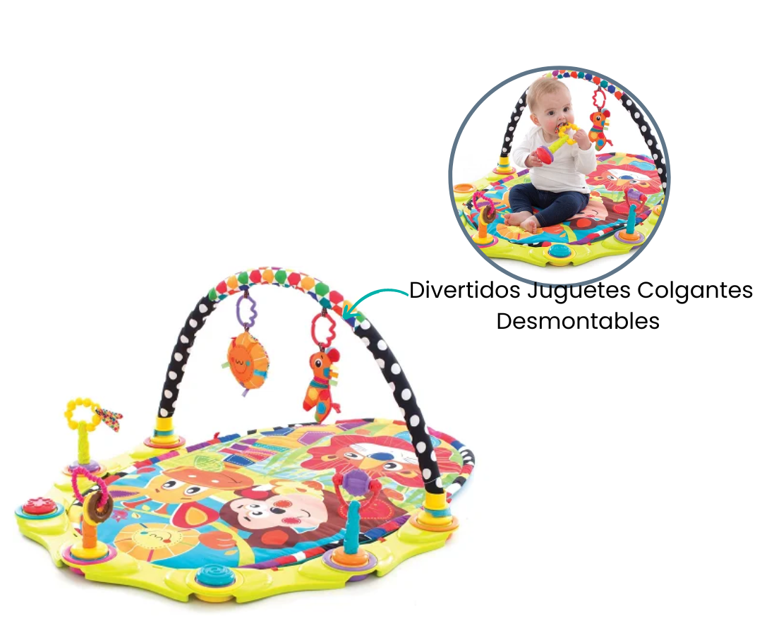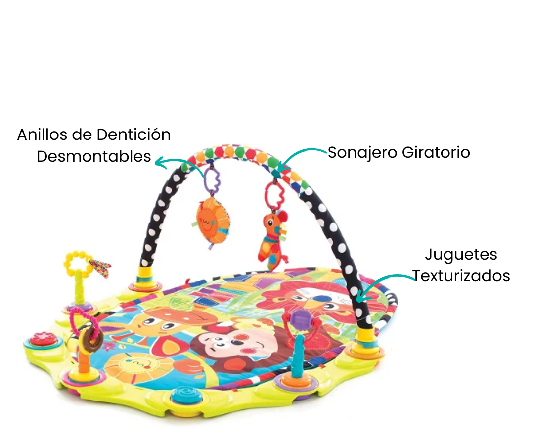 Transforma el tiempo de juego de tu bebé en una aventura vibrante con el gimnasio de juego de la selva. Esta colorida alfombra no solo proporciona diversión, sino también una variedad de actividades diseñadas para estimular y desarrollar los sentidos de tu pequeño. Con adorables animales y texturas suaves, cada momento de juego se convierte en una experiencia sensorial que fomenta el descubrimiento y el desarrollo.