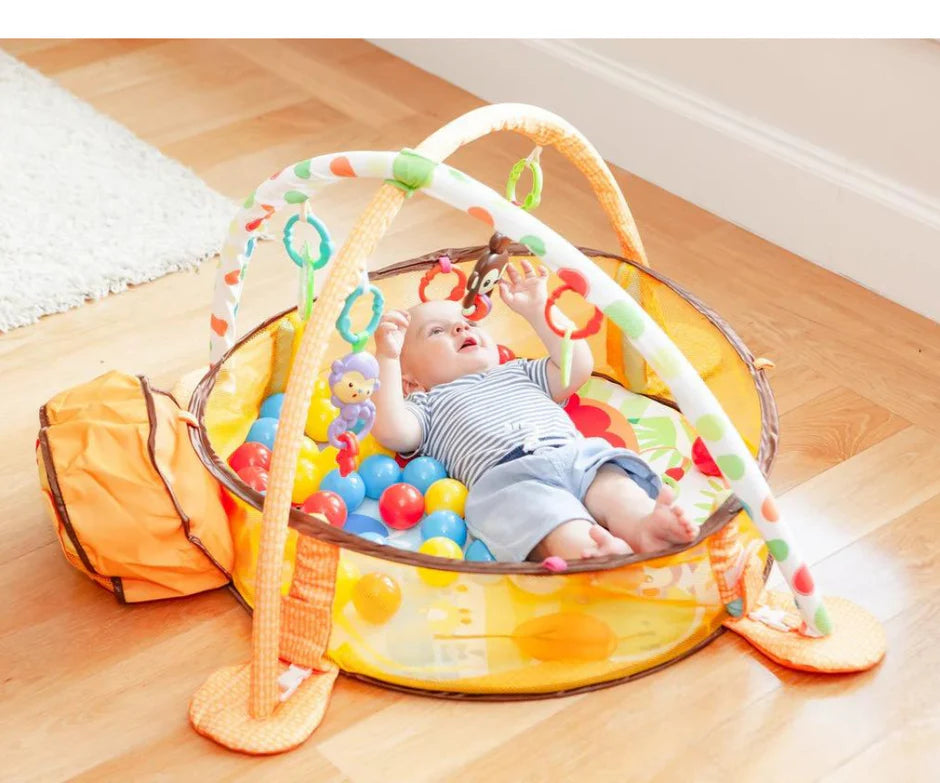 Esta configuración se adapta a medida que el niño crece y se sienta de forma independiente. Con 30 pelotas de colores y patrones destacados,