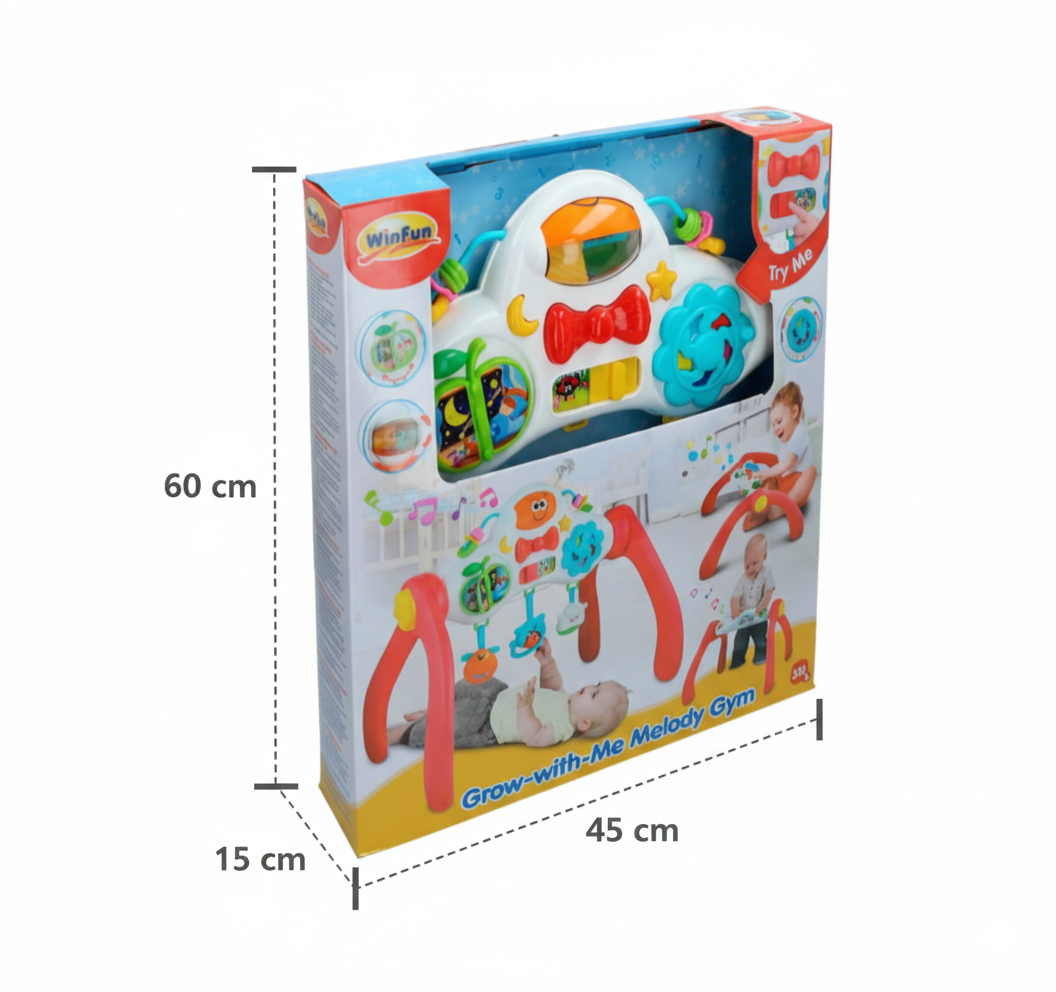 El gimnasio para bebés es un centro de juegos interactivo que estimula los sentidos y acompaña el desarrollo desde los primeros meses. Con sonidos, melodías y accesorios llamativos, ofrece diversión continua en cada fase. Tu pequeño puede usarlo tumbado para explorar, sentado para interactuar o de pie mientras descubre el mundo con más autonomía.