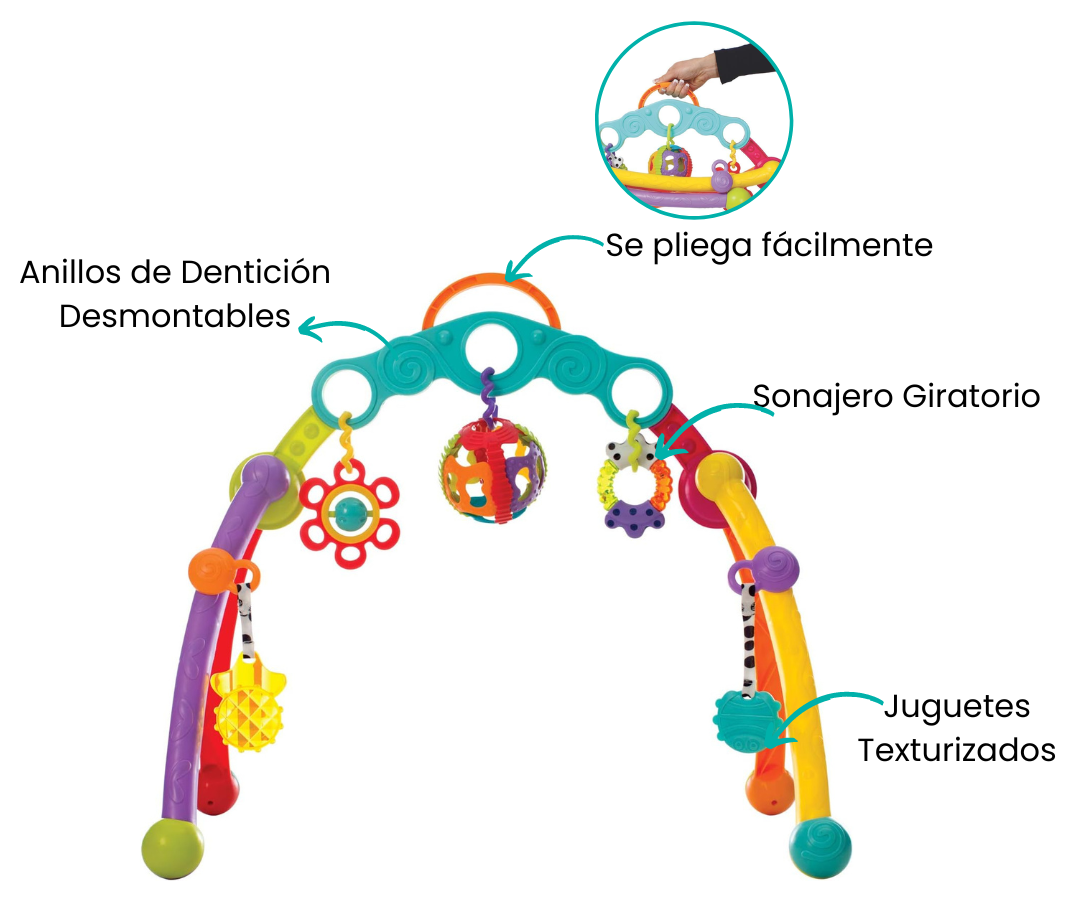 Explora un mundo de estimulación y diversión con el arco de juego multicolor.
