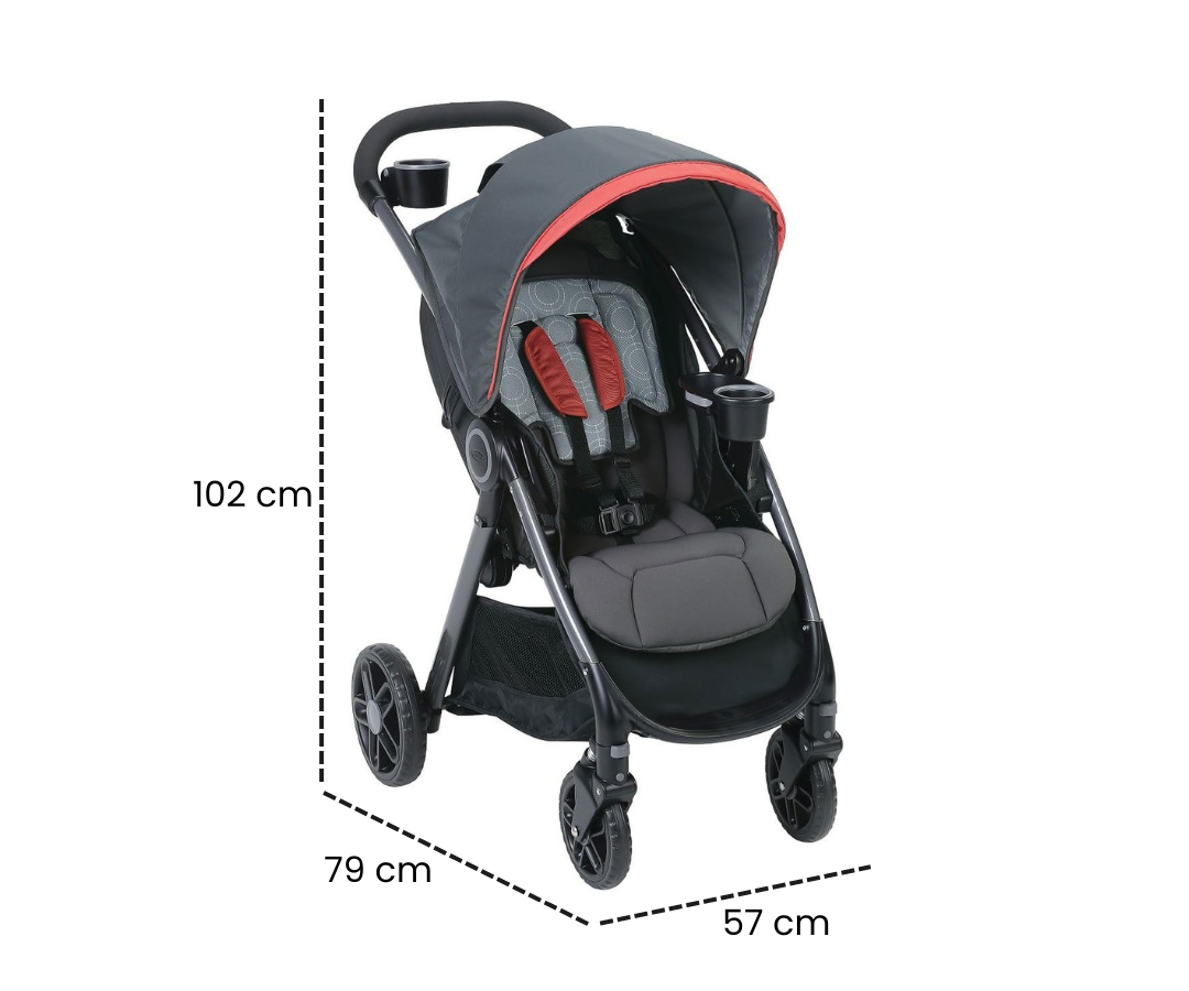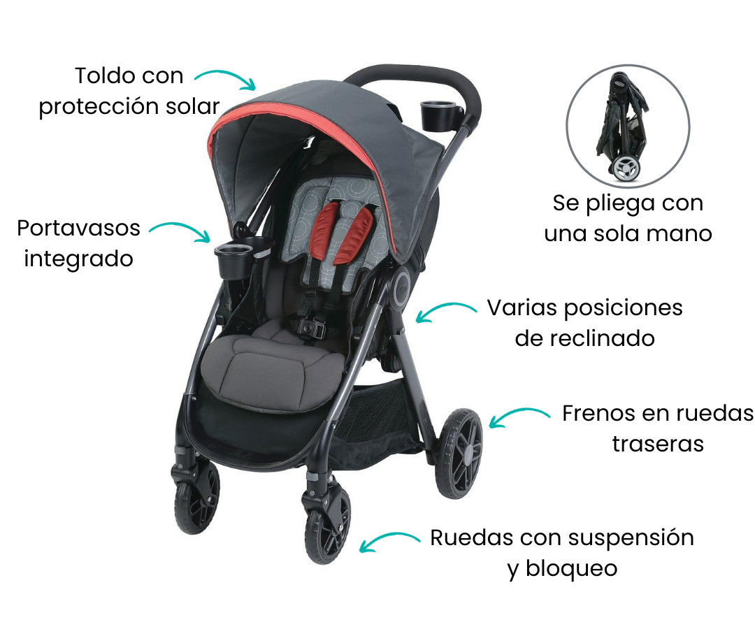 Coche que facilita tu vida con su plegado de una sola mano y traba automática para un almacenaje y transporte sin complicaciones. Sus 4 ruedas delanteras cuentan con suspensión y bloqueo, mientras que las 2 traseras poseen frenos independientes, brindando un control total durante tus paseos.