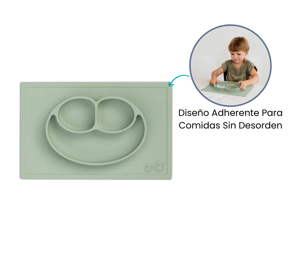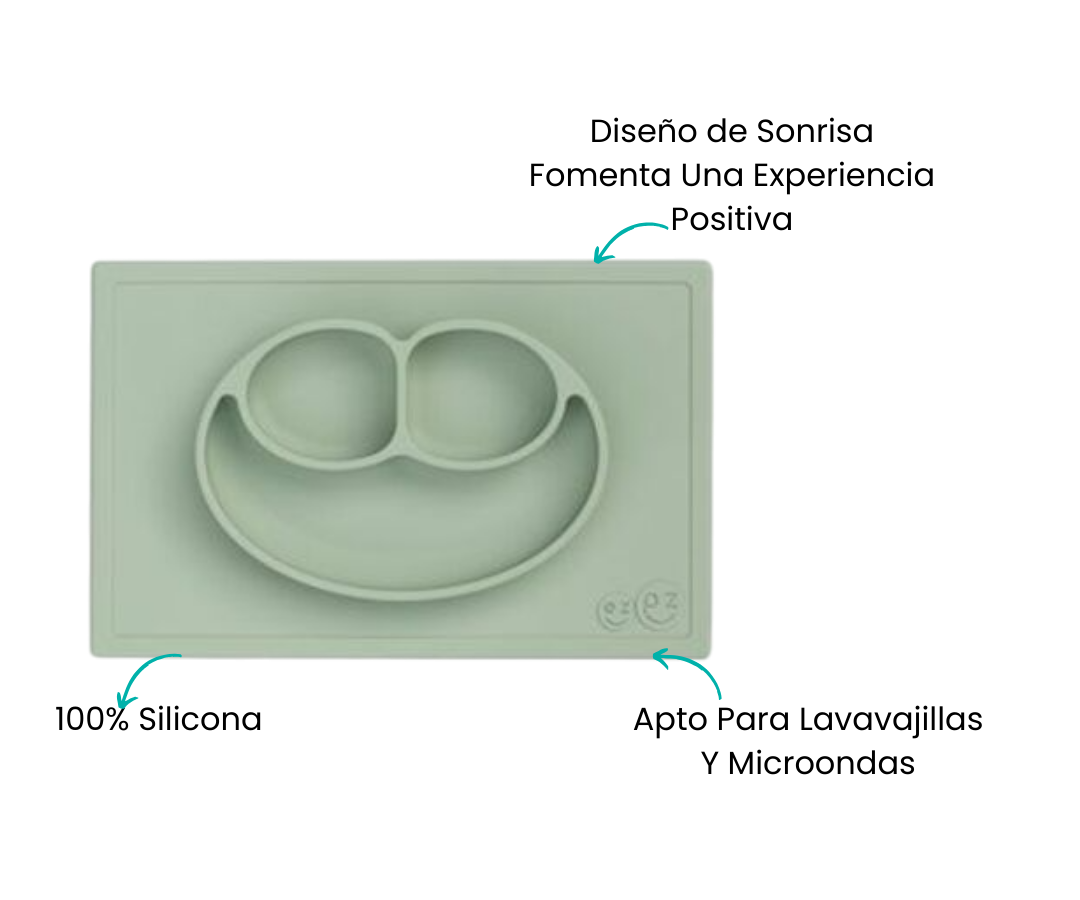 El Happy Mat de EZPZ es un innovador individual con plato integrado, premiado por su funcionalidad. Su diseño único se adhiere a la mesa, evitando derrames y desorden. Con esta solución todo en uno, la hora de alimentar a tu bebé ya no será un problema.