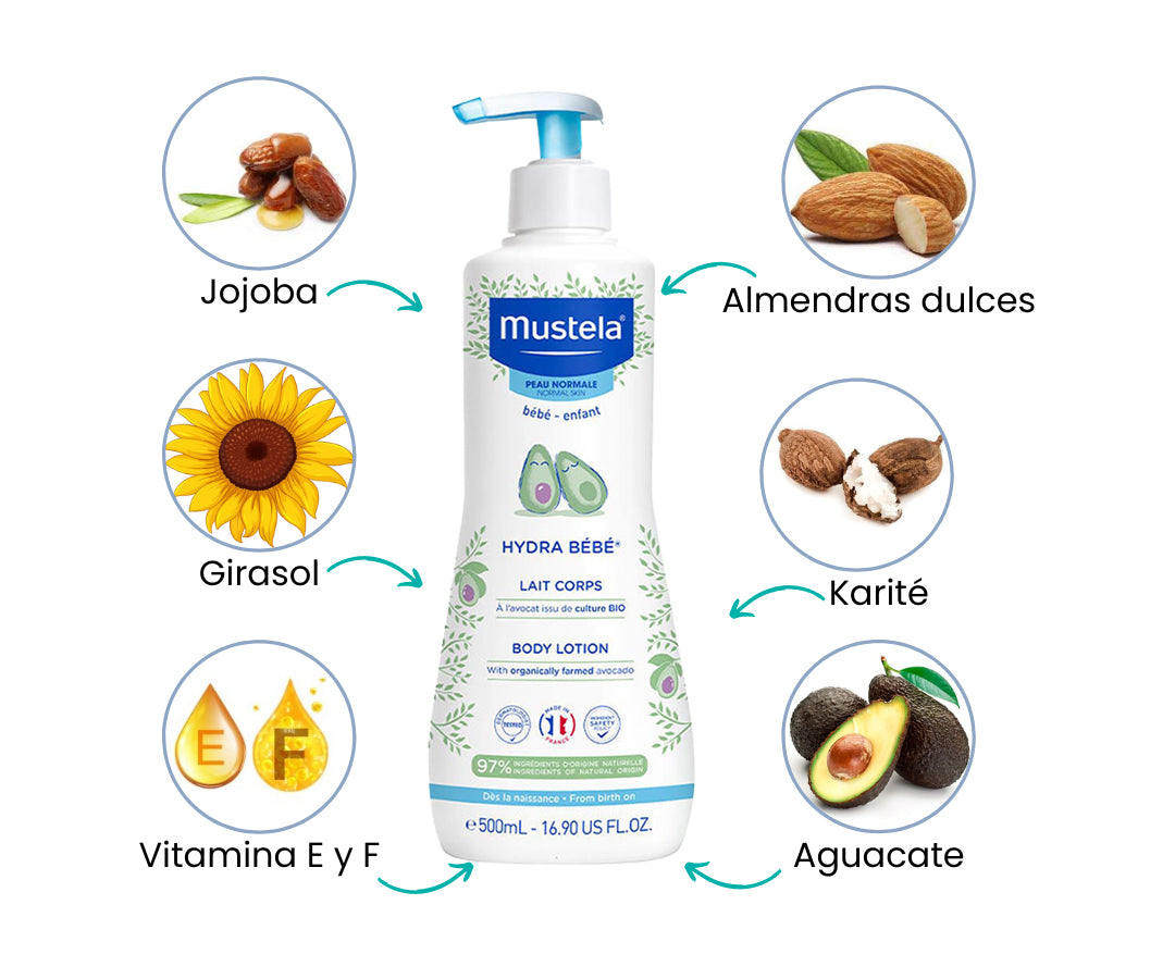 Enriquecida con un elixir de ingredientes naturales como aceite de jojoba, aceite de girasol, vitaminas E y F, aceite de almendras dulces, manteca de karité y el exclusivo aguacate perseose, esta loción fortalece y protege la piel de tu bebé mientras proporciona una hidratación inmediata y duradera.