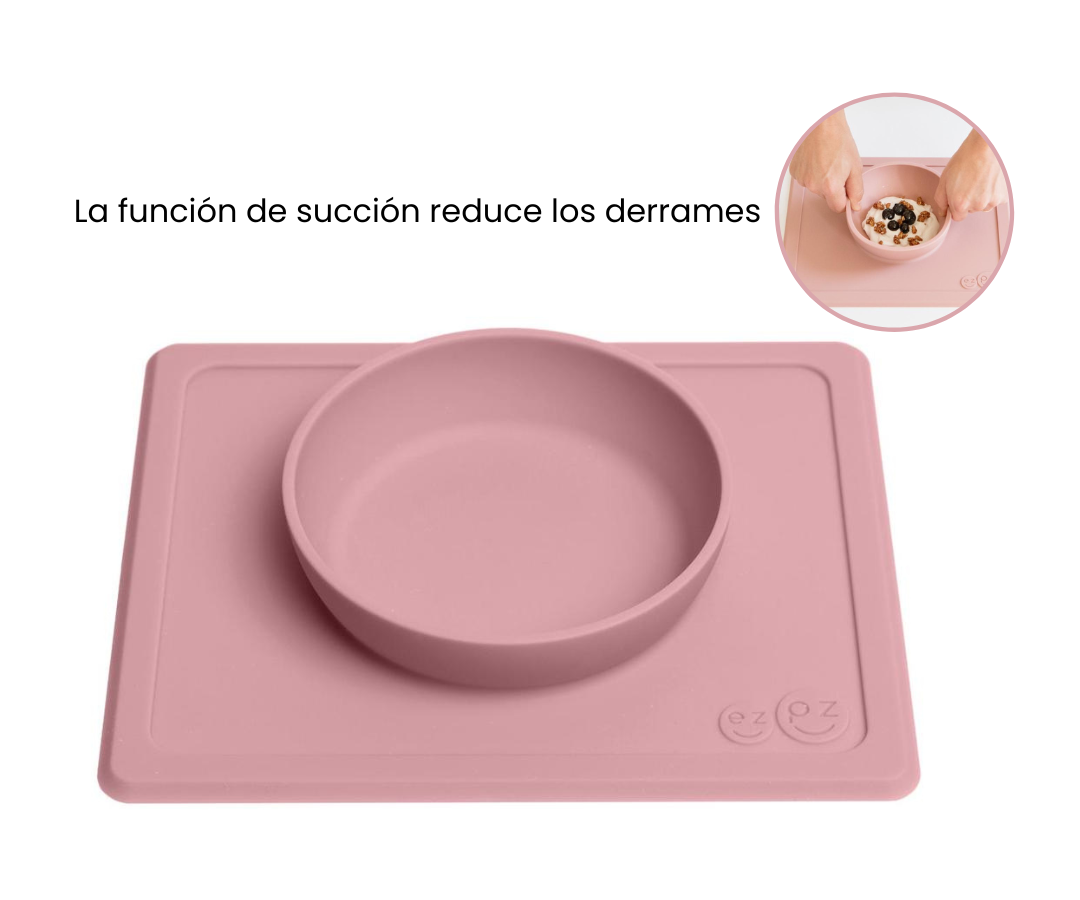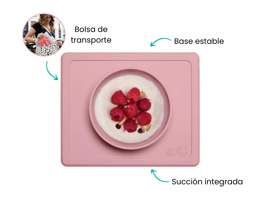 Su función de succión reduce los derrames, mientras que la base estable promueve la auto alimentación y el desarrollo de la motricidad fina. Se adapta a todas las bandejas de tronas, es compacto y liviano, es ideal para cenas y viajes.