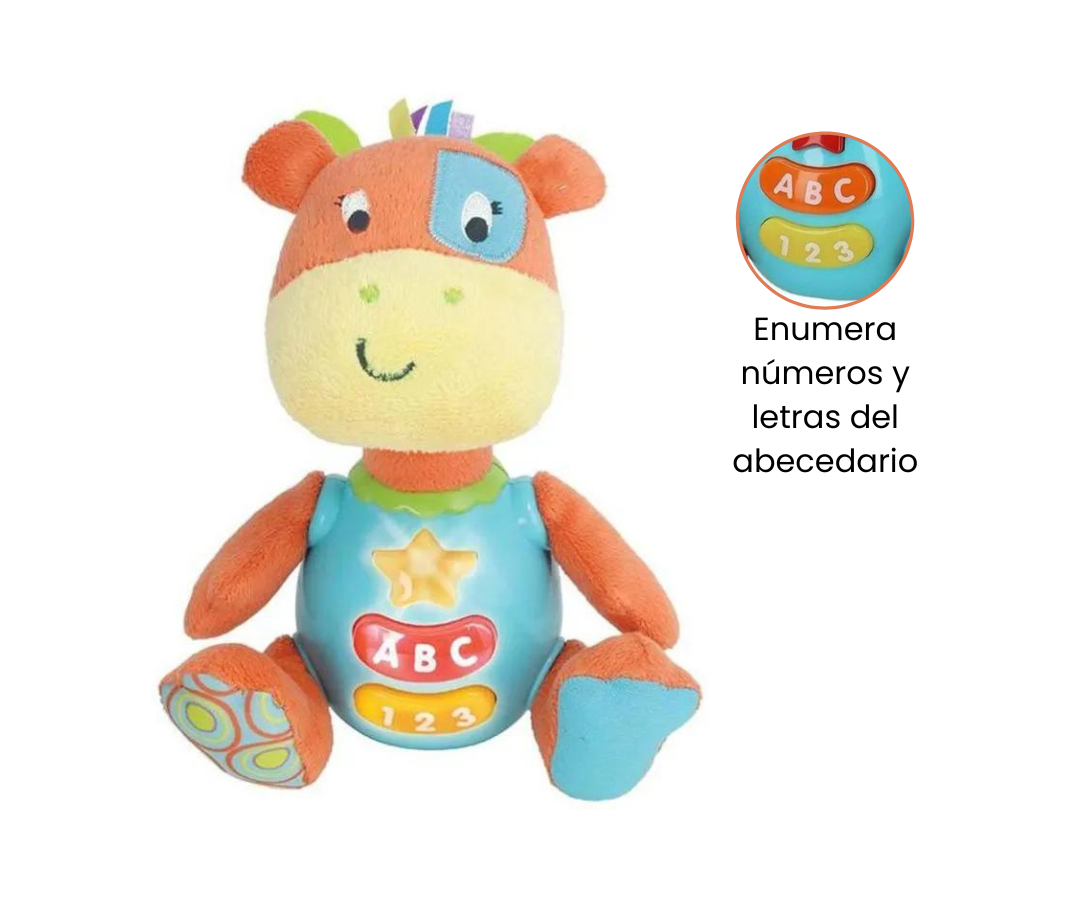 Este juguete no solo es adorable, sino también educativo. A medida que la jirafa habla, enumera números y letras del abecedario, contribuyendo al desarrollo cognitivo, el razonamiento y la coordinación entre manos-ojos de los pequeños.