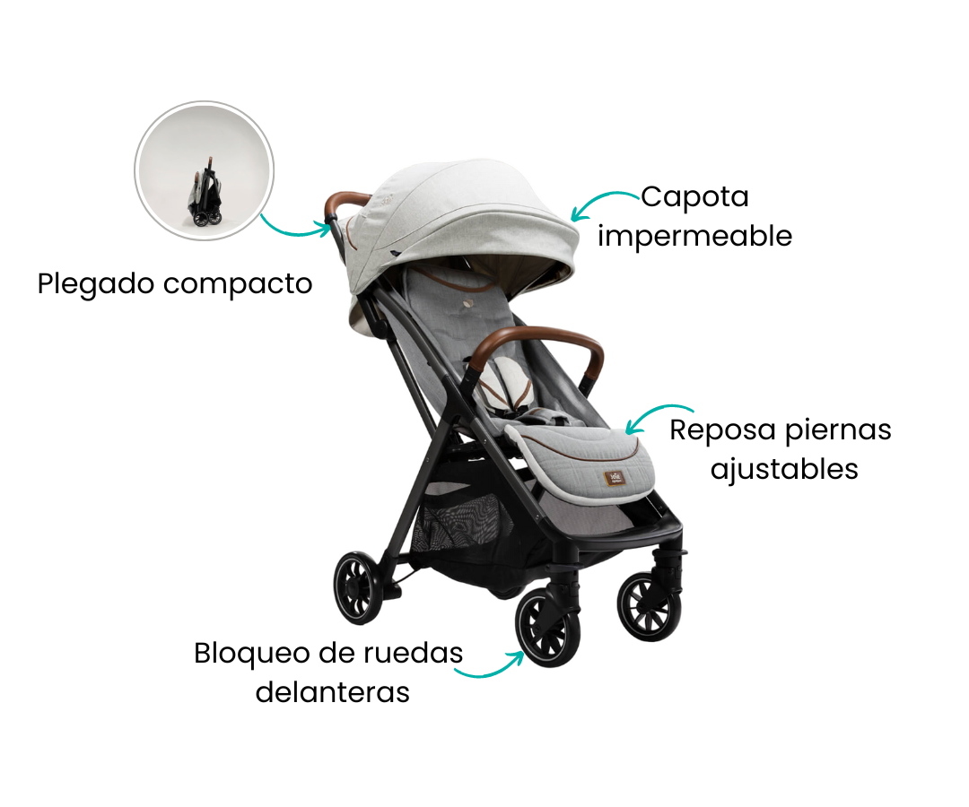 Es la elección perfecta para tus aventuras con el bebé. Compacto, ligero y cómodo, garantiza un paseo sin complicaciones. Diseñado para acompañar desde el nacimiento, ofrece versatilidad desde el primer día. Con su diseño práctico, te brinda la libertad de moverte con facilidad en cualquier entorno. Prepárate para disfrutar de cada momento con tu pequeño gracias a este cochecito diseñado para la comodidad.