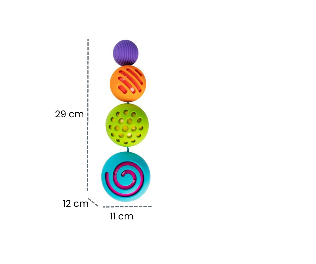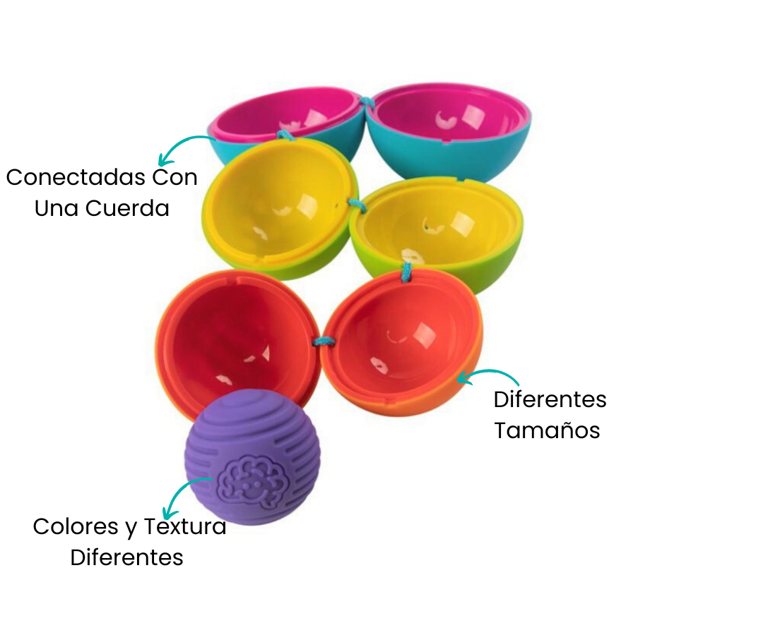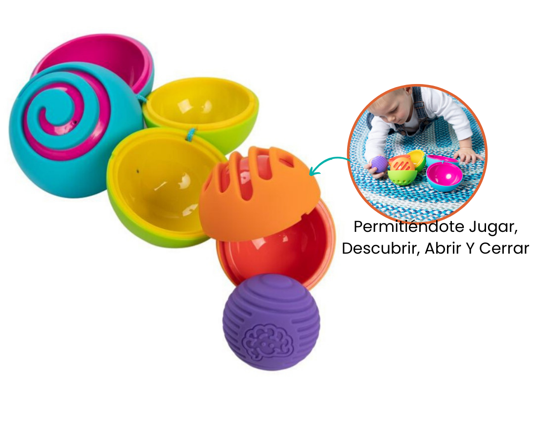 OombeeBalls ofrece 4 bolas de distintos tamaños que se ensamblan al abrirse. Cada pelota presenta colores vibrantes y texturas únicas, como puntos, líneas y caracoles, para cautivar los deditos de tu hijo. Este juguete no solo brinda entretenimiento, sino que también estimula la coordinación y destreza, fomentando el desarrollo motor fino mientras exploran formas y texturas. Con OombeeBalls, la diversión se combina con el aprendizaje, ofreciendo a los más pequeños una experiencia táctil y visual enriquecedora. ¡Descubre el mundo sensorial y creativo con estas bolas interactivas!