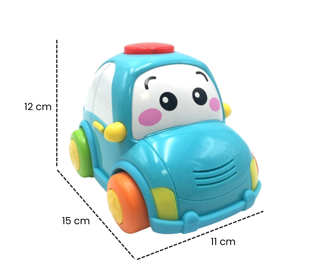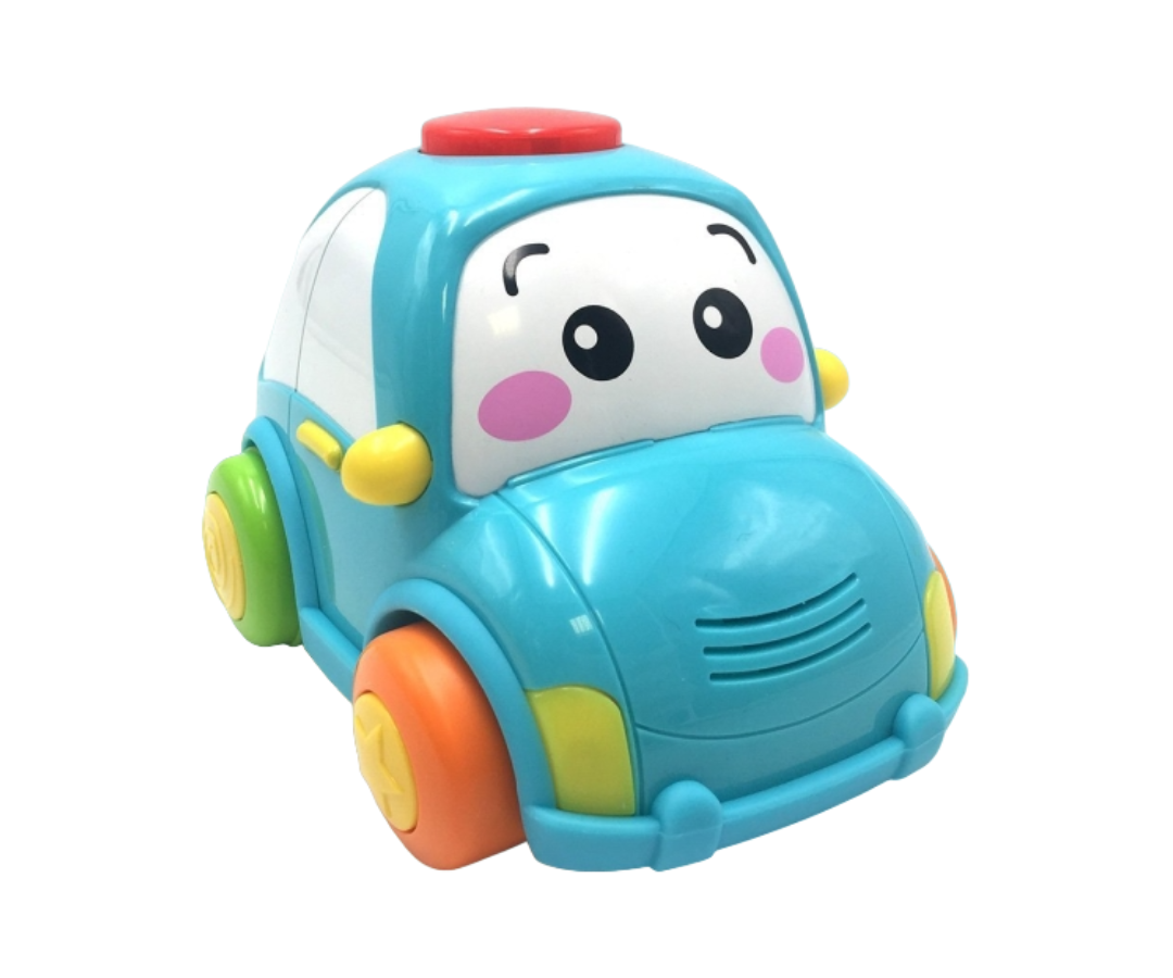 Los divertidos efectos de sonido y melodías relacionados con el automóvil y la conducción se activan desde el botón de la bocina del control remoto o desde el grueso botón rojo en la parte superior del automóvil. A medida que el vehículo avanza, sus faros se iluminarán y parpadearán.
