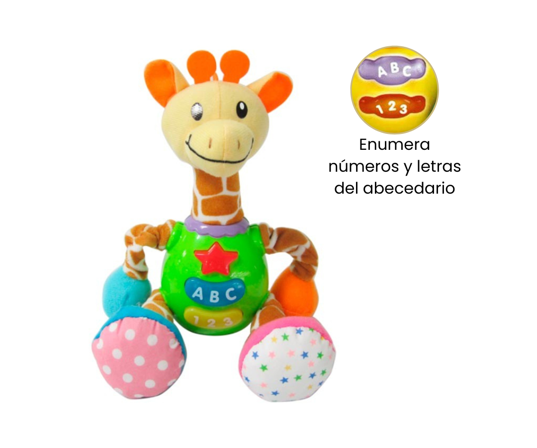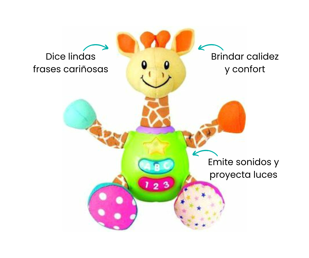 Este adorable juguete de jirafa brinda calidez, confort y también estimula los sentidos con sus sorprendentes características. Con funciones interactivas como hablar, emitir sonidos y proyectar luces parpadeantes de colores, se convierte en el compañero perfecto.