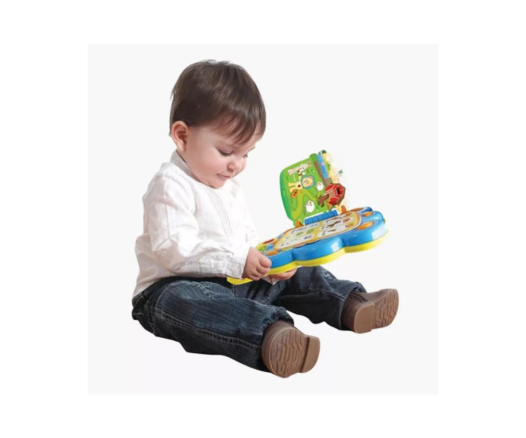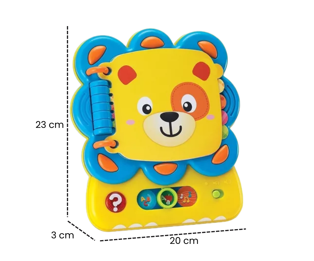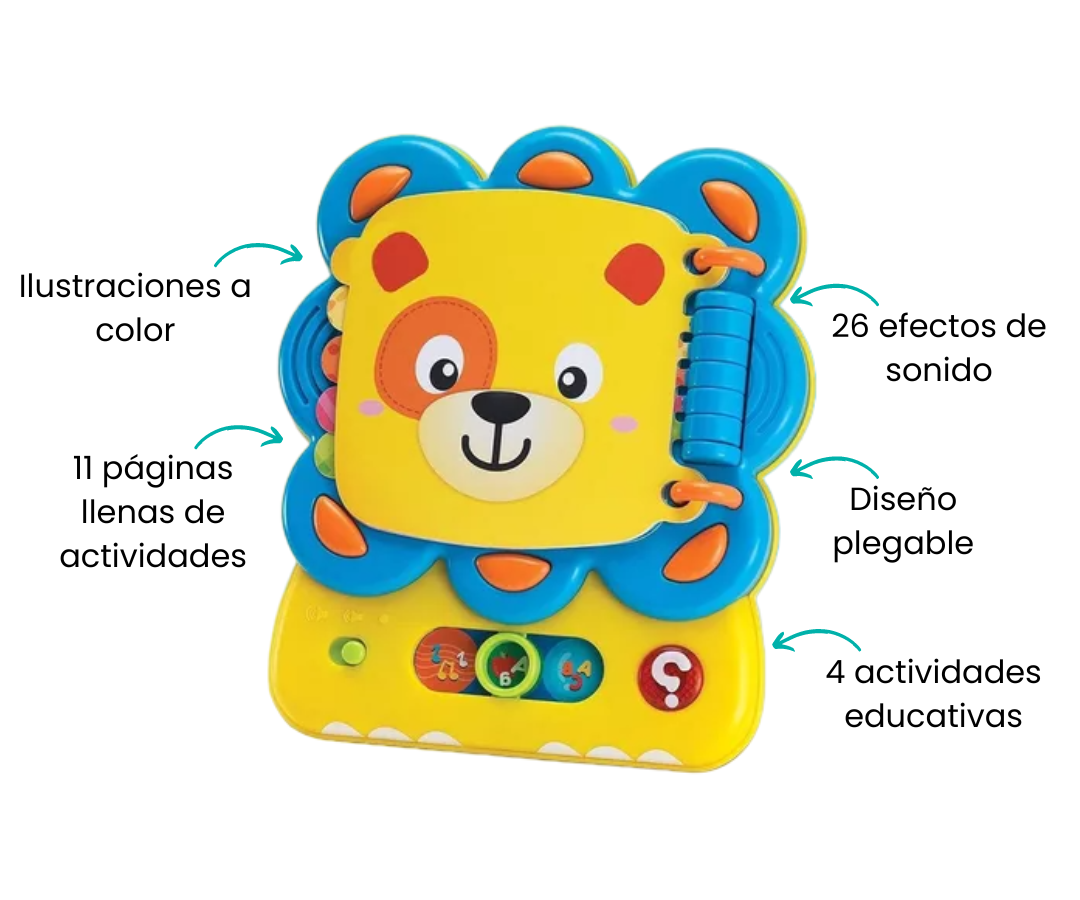 Este juguete para bebé es un libro parlante interactivo con 4 actividades de aprendizaje: Identificación de letras, formas, objetos y palabras, 11 páginas, gráficos de colores, 26 efectos de sonido y divertidas melodías para estimular el sistema sensorial (vista, tacto, oído) de tu pequeño.
