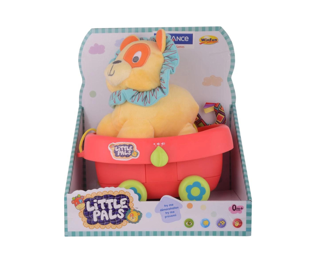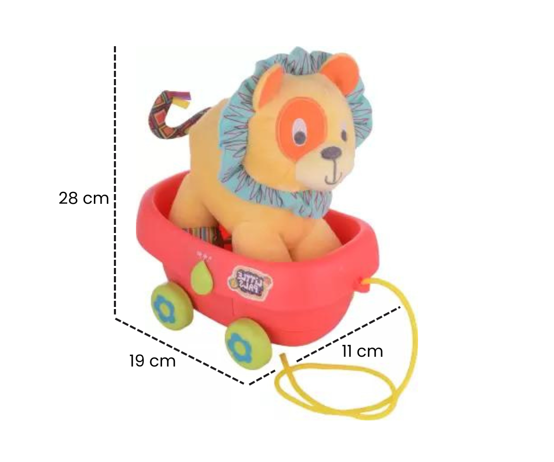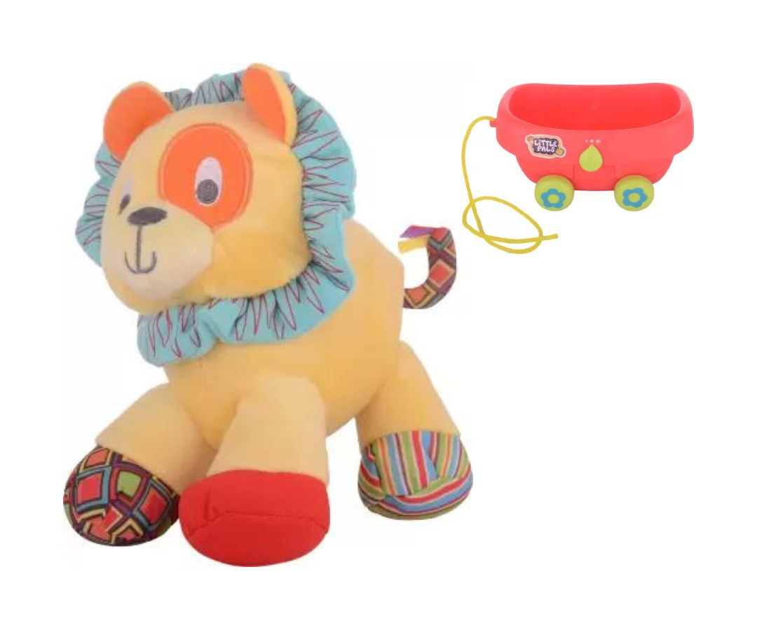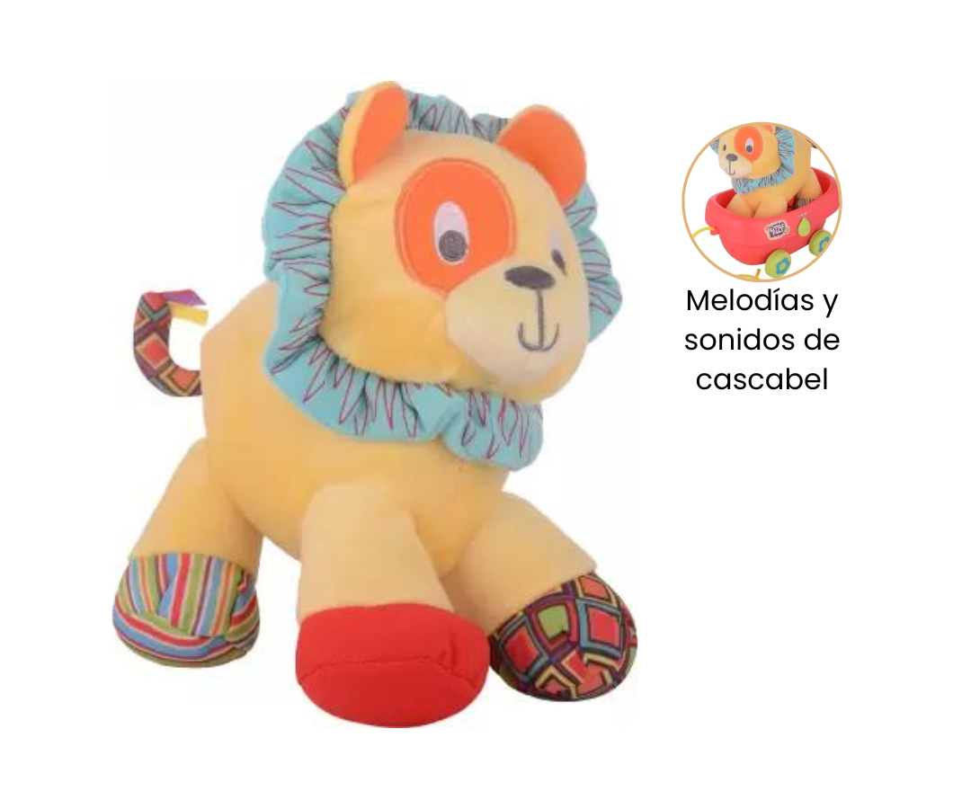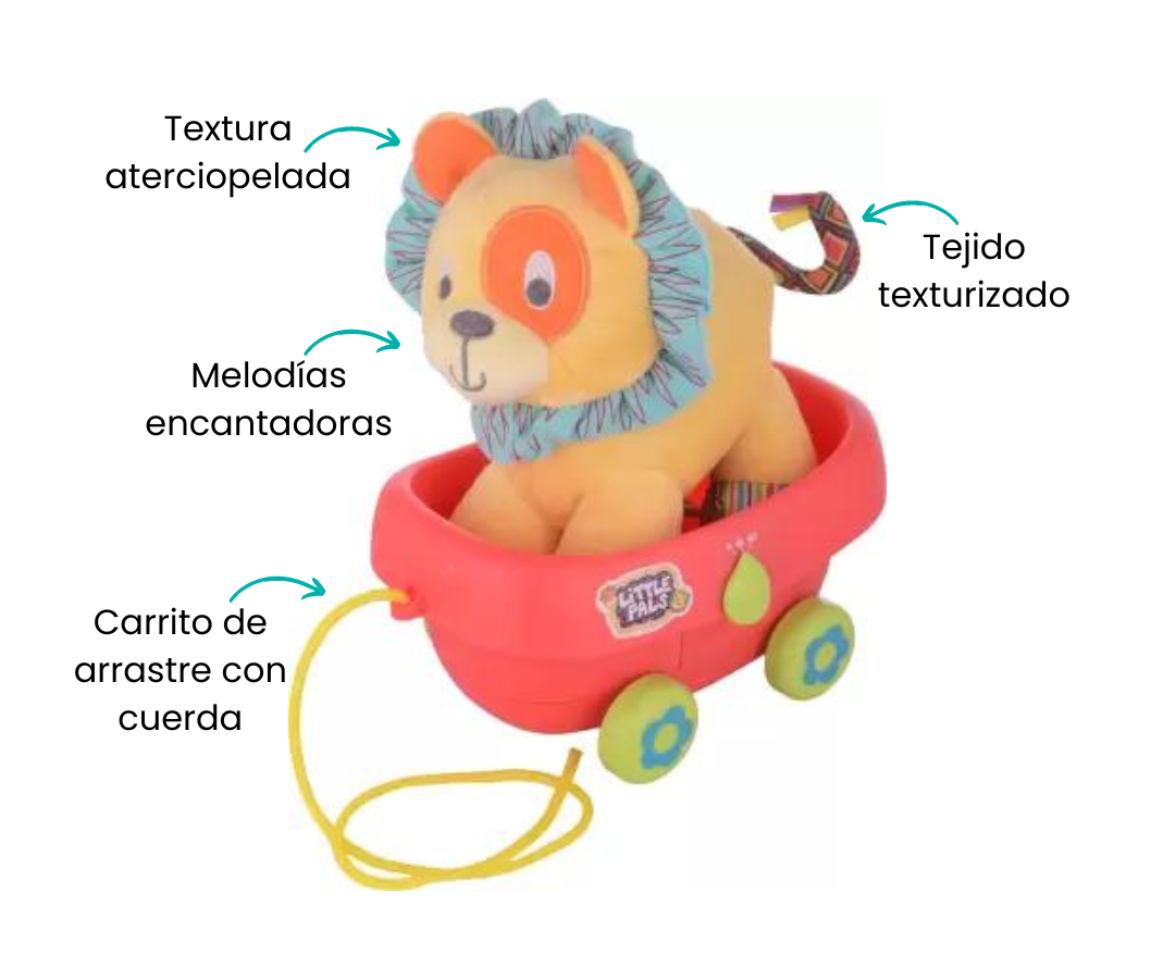 Este adorable león de peluche tiene una suavidad y textura aterciopelada y hacen que sea el compañero perfecto para tus paseos, mientras tiras de su carrito y descubres un mundo de diversión. Con sonidos alegres y melodías encantadoras, este león es mucho más que un juguete, es una experiencia sensorial que estimula la curiosidad de tu pequeño.