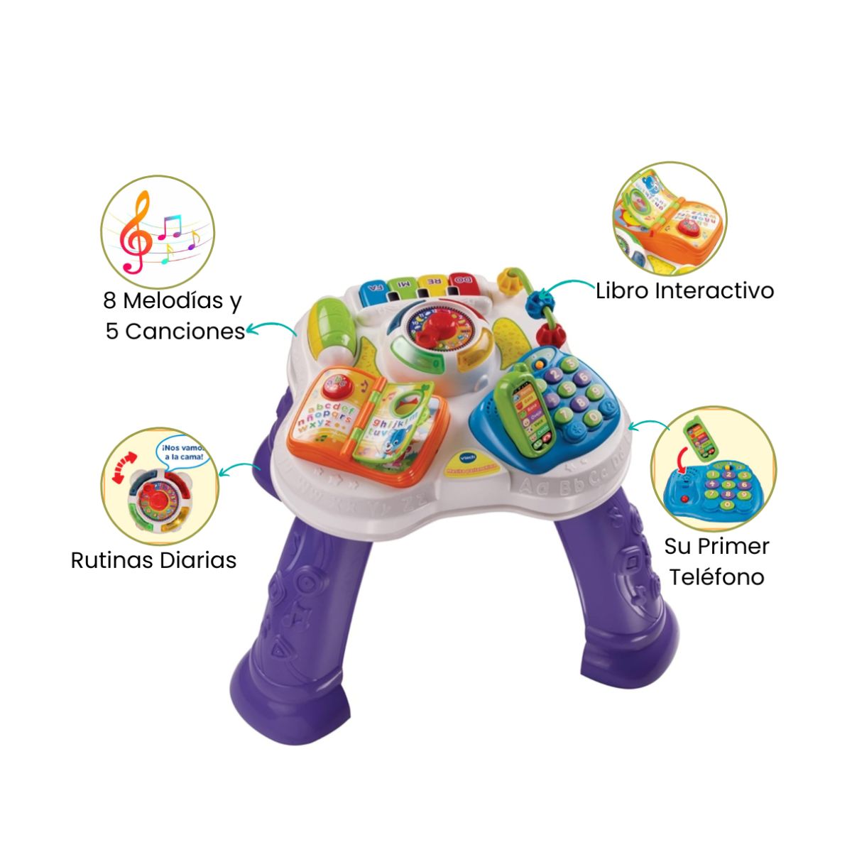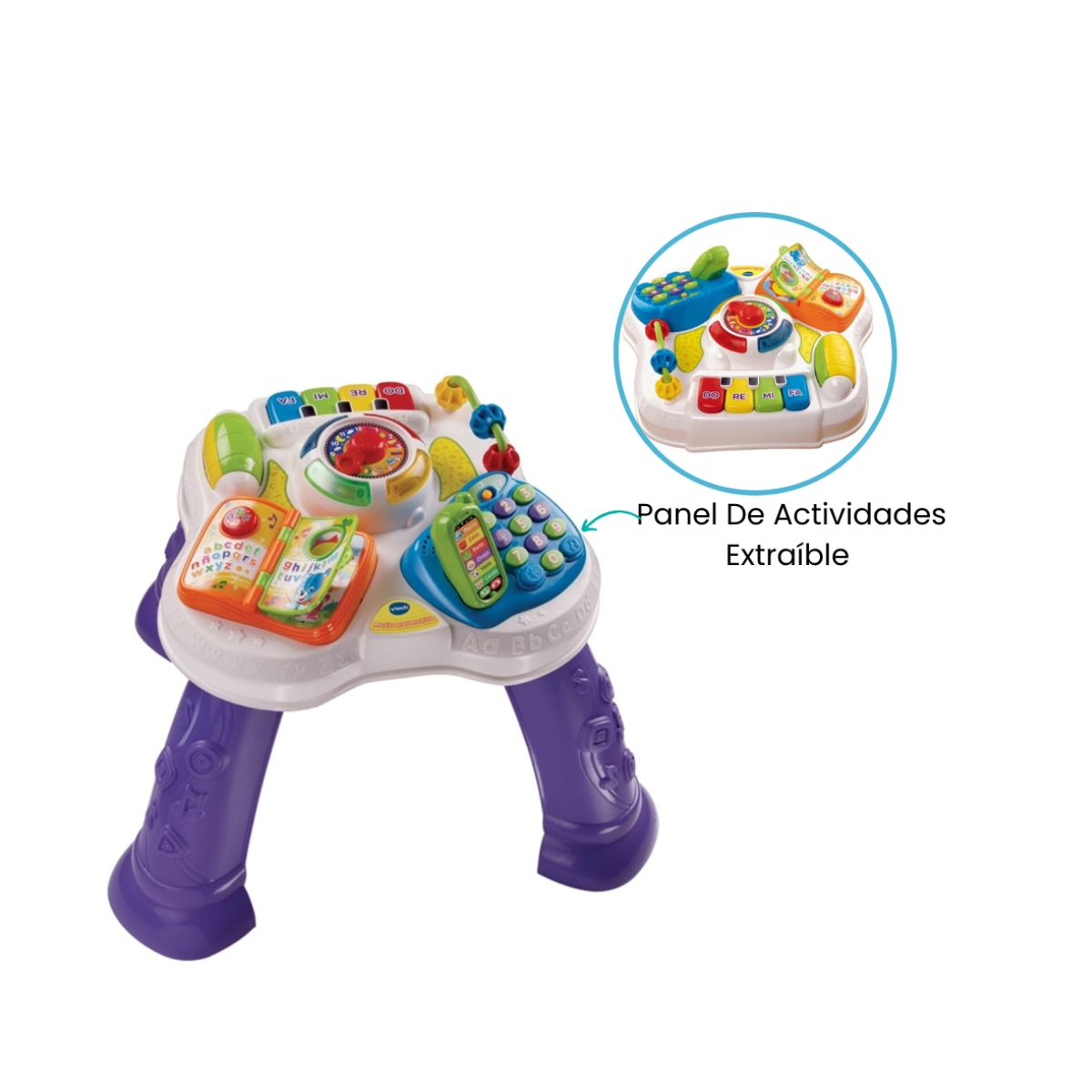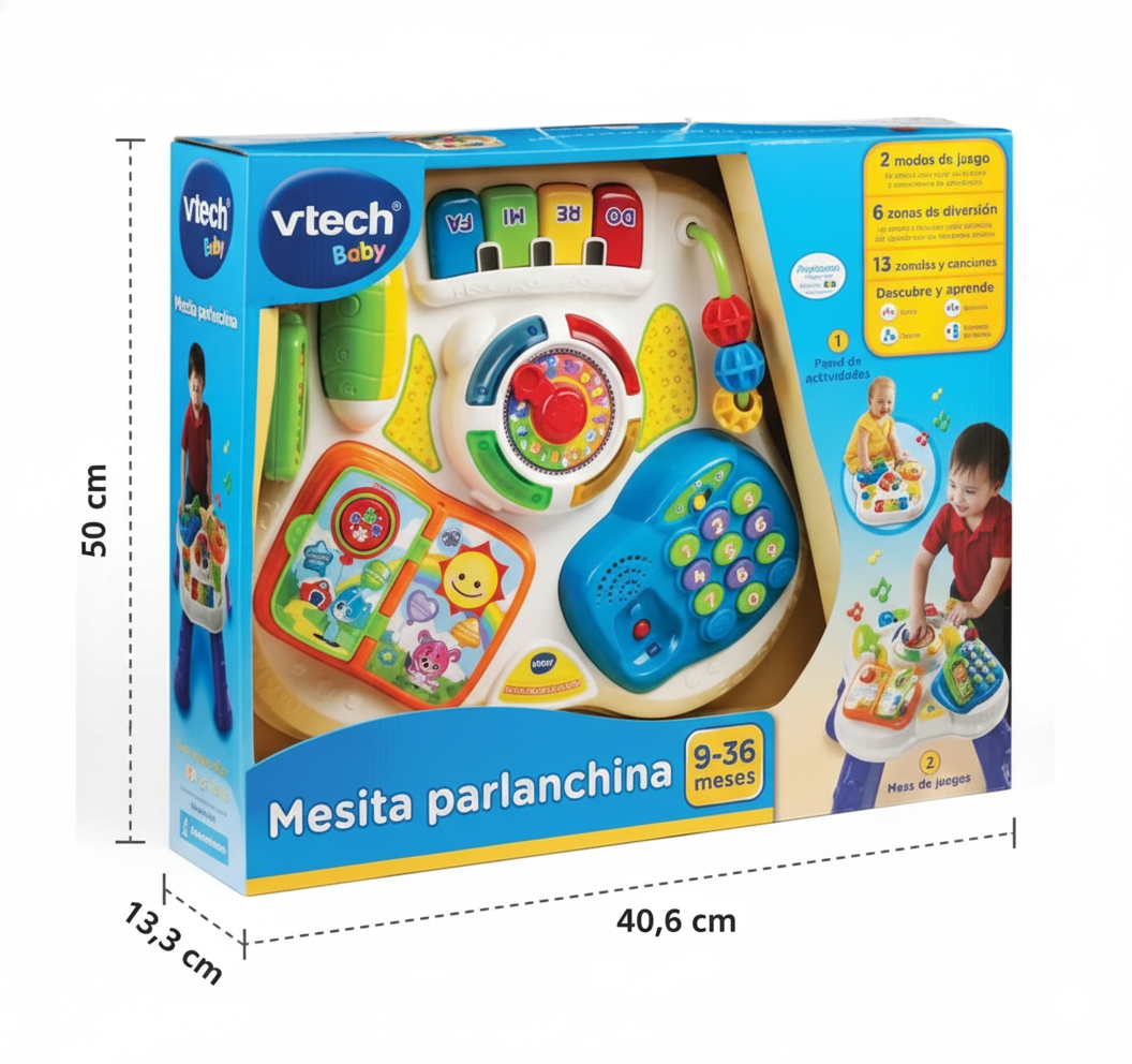 La mesita interactiva ofrece dos modos de juego: como mesita tradicional y como panel de actividades extraíble, brindando versatilidad para acompañar cada etapa. Su diseño permite jugar tanto sentado como de pie, adaptándose al crecimiento y fortaleciendo la motricidad. Con luces, sonidos y botones interactivos, despierta la curiosidad y estimula la creatividad del pequeño. Ideal para usar en casa o llevar en movimiento, garantizando horas de diversión y aprendizaje.
