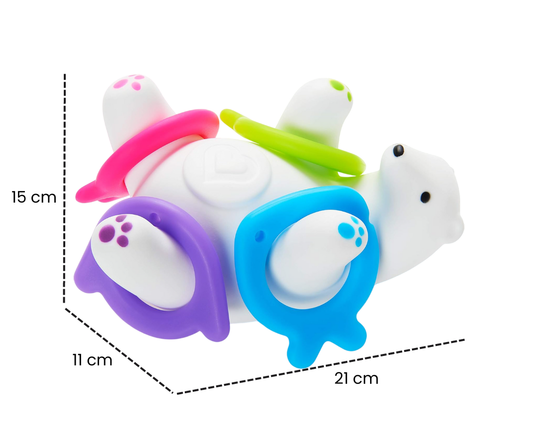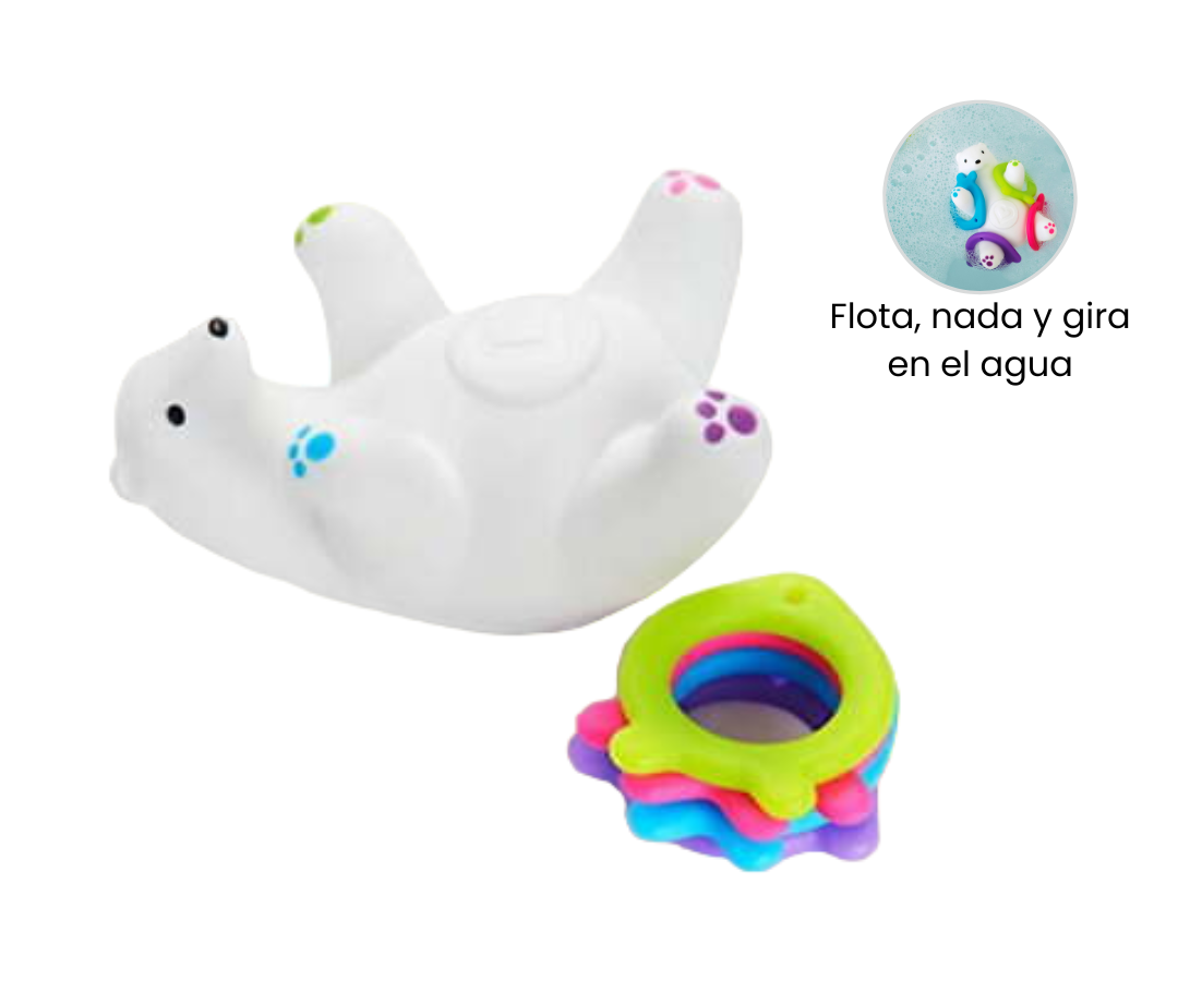 El oso polar esta diseñado para ser ligeramente pesado, flota y te permite lanzar anillos hábilmente en las piernas del oso o desatar tu creatividad apilándolos en su vientre, ofreciendo horas interminables de entretenimiento acuático.