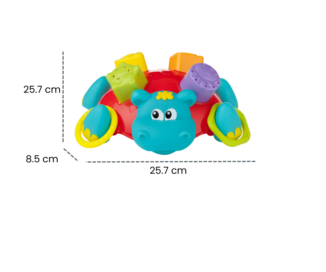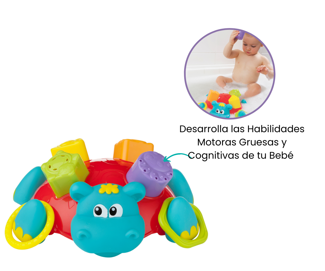 Sumérgete en la diversión acuática con el adorable hipopótamo flotante Sort n' Stack! Este juguete no solo flota en el agua, sino que también ofrece oportunidades de clasificación y apilamiento para el bebé. Con colores vibrantes y formas llamativas, este hipopótamo seguro será un favorito durante la hora del baño.