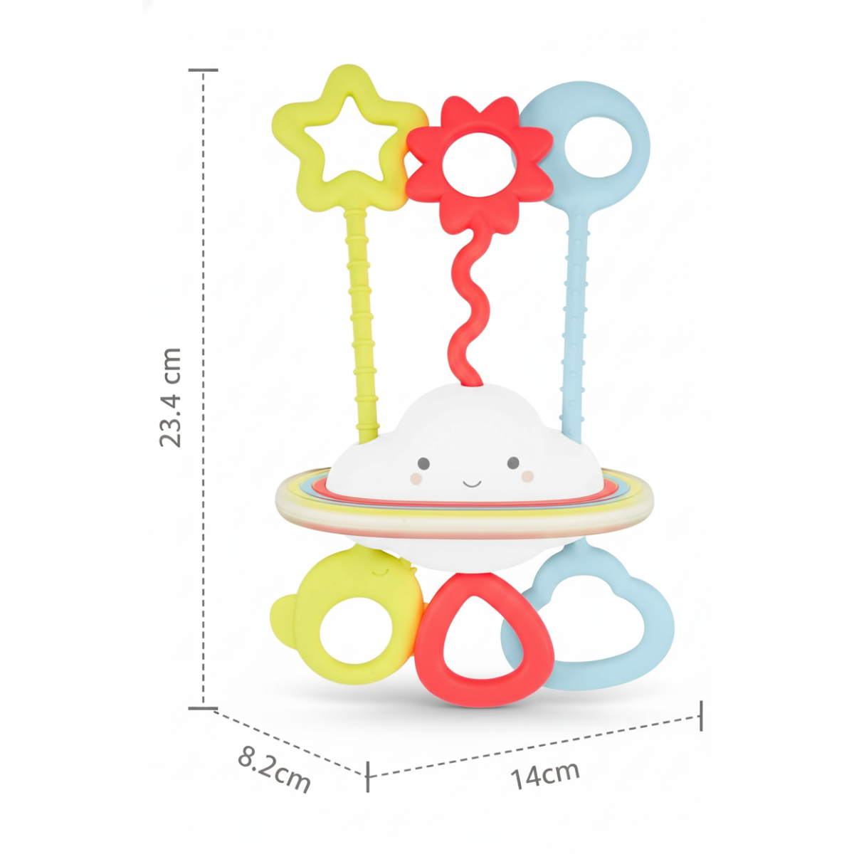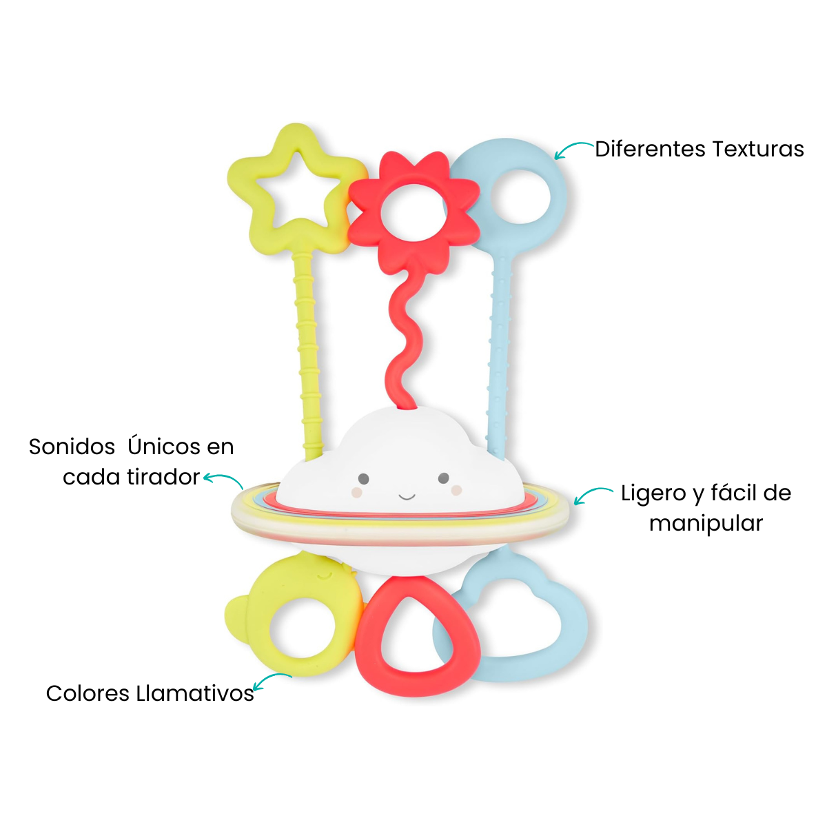 El juguete sensorial Silver Lining Cloud de Skip Hop está diseñado para acompañar los primeros descubrimientos del bebé, estimulando su curiosidad natural y fomentando la exploración a través del tacto, el sonido y el movimiento. Con sus suaves texturas de silicona y atractivas formas celestiales, este juguete ofrece una experiencia multisensorial que despierta la imaginación y promueve el aprendizaje a través del juego. Perfecto para mantener entretenido al pequeño mientras desarrolla sus sentidos de manera segura y divertida.