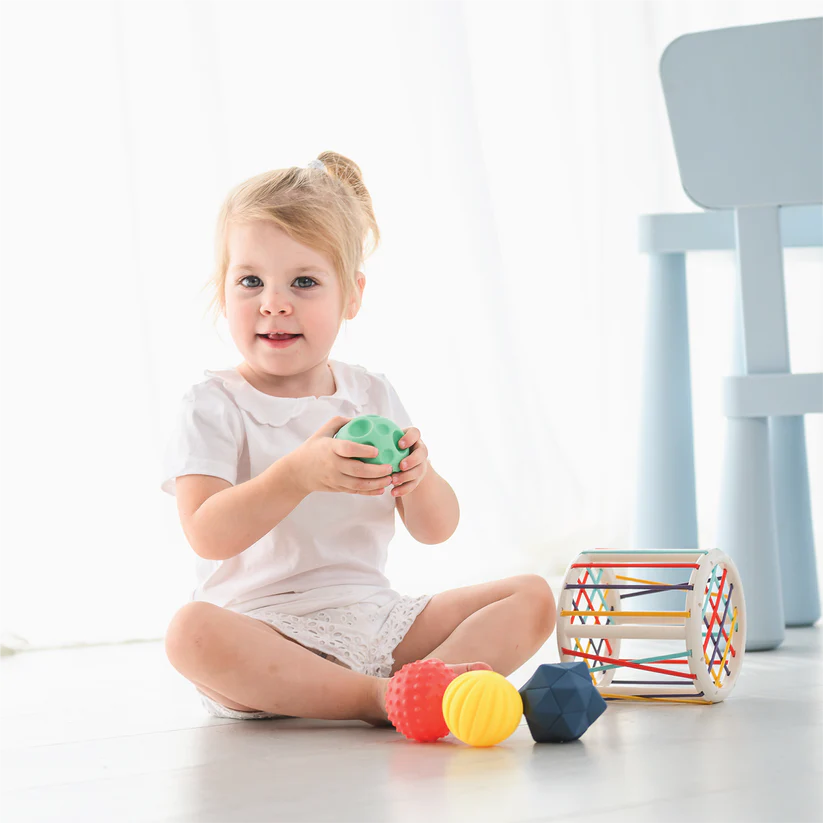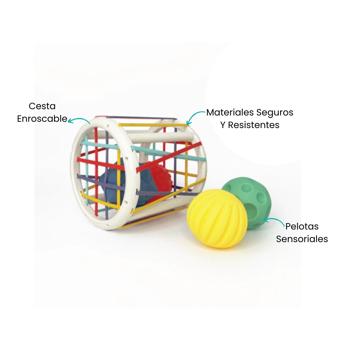 Este set sensorial de 5 piezas combina pelotas texturizadas y una cesta enroscable para ofrecer una experiencia de aprendizaje divertida y estimulante. Diseñado para bebés desde los 10 meses, invita a explorar colores, formas y movimientos mientras desarrolla la coordinación, la motricidad fina y la curiosidad natural del pequeño. Cada pieza está pensada para acompañar el crecimiento y las primeras etapas del descubrimiento.