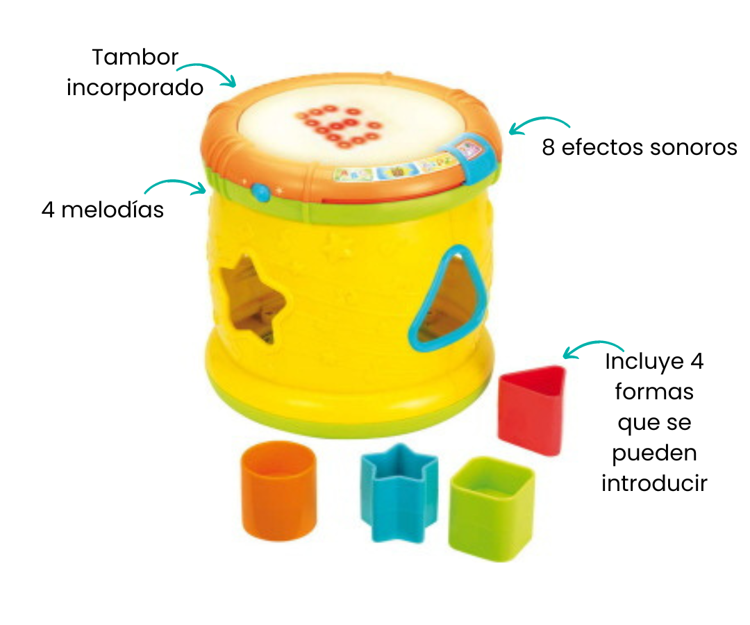 Descubre el mundo musical con nuestro juguete interactivo. No solo incluye una variedad de formas y colores para estimular el aprendizaje, sino que también presenta 4 figuras encajables con diferentes formas, ofreciendo a los pequeños exploradores una experiencia completa de juego y aprendizaje.