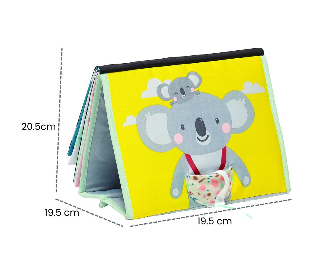 Embárcate en una tierna travesía de aprendizaje con el encantador libro de tela Koala. Diseñado para nutrir los sentidos y la motricidad fina de los niños.