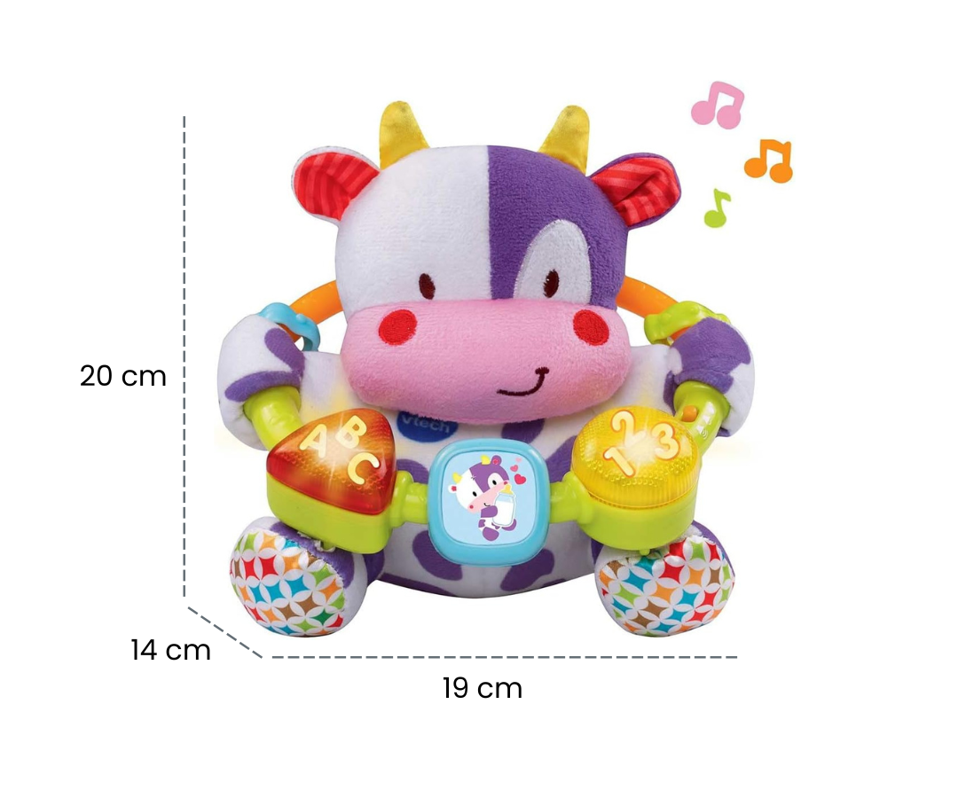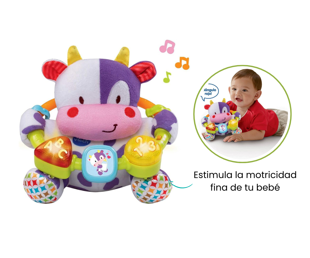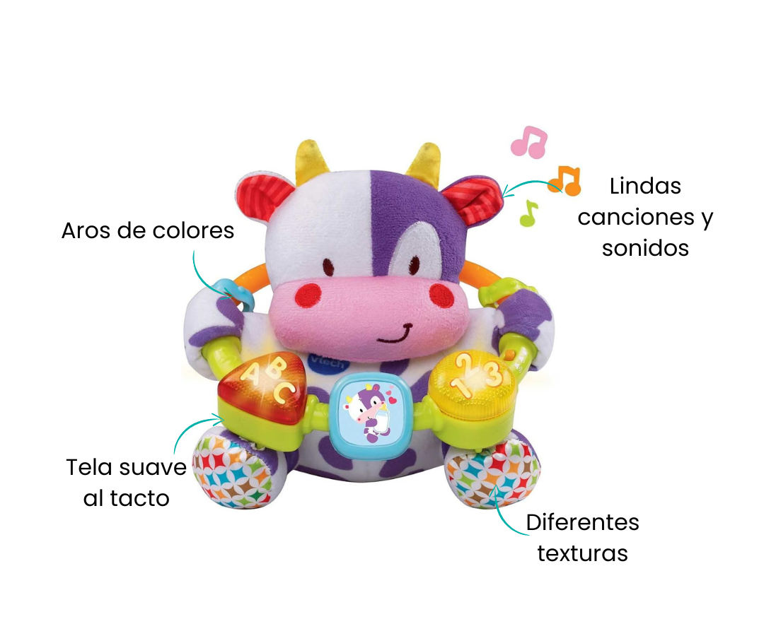 Diseñado con diferentes texturas, nuestro peluche conforma de vaca estimula el sentido del tacto del bebé. Cada caricia no solo es suave y acogedora, sino que también ofrece una experiencia táctil diversa para fomentar la exploración sensorial.