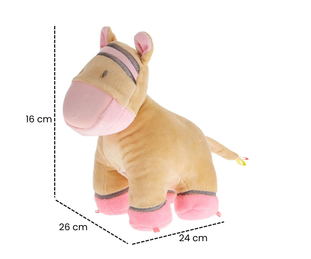 La cebra semi suave con dulces canciones de cuna es un compañero que brinda una experiencia única de calma y confort para los pequeños. Sus cintas de raso y sus pies redondos y suaves ofrecen una textura táctil y un estímulo sensorial adicional.