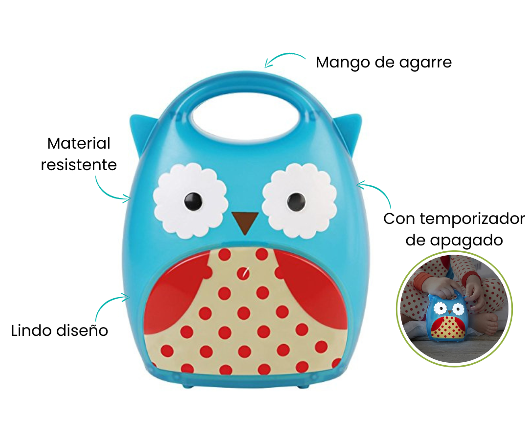 Su botón de encendido/apagado grande es perfecto para las manitas pequeñas, permitiendo que los niños controlen su propia luz con facilidad. Además, la luz cuenta con un apagado automático de 30 minutos que disminuye lentamente, proporcionando el tiempo perfecto para que los pequeños se sumerjan en un sueño reparador.