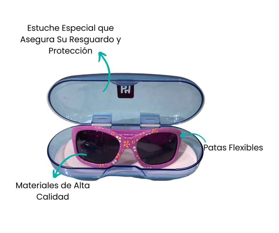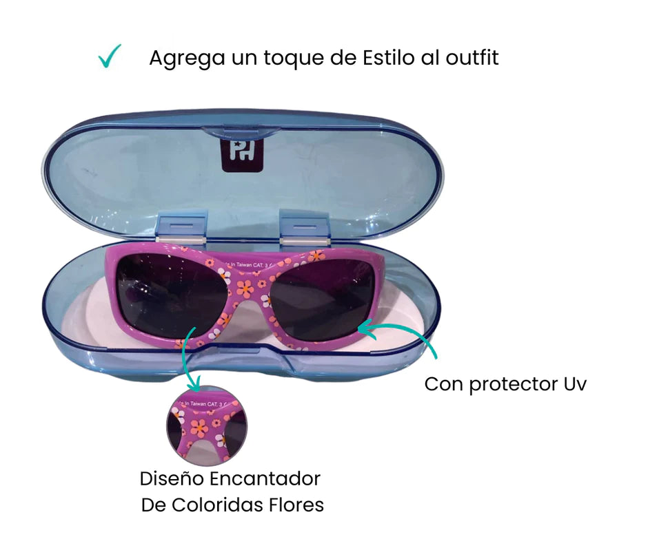 Descubre los nuevos lentes de sol Lila Estamp Flores de la marca B4 Baby. Con un diseño encantador y lleno de coloridas flores, estos lentes no solo protegen los delicados ojos de tu bebé de los rayos del sol, sino que también le darán un toque adorable a su look.