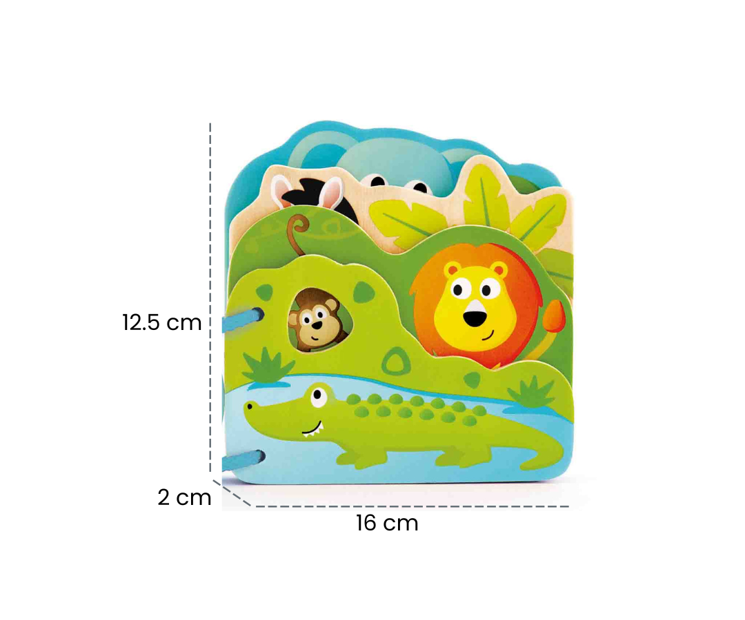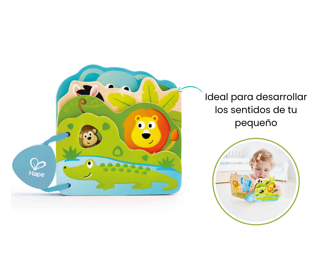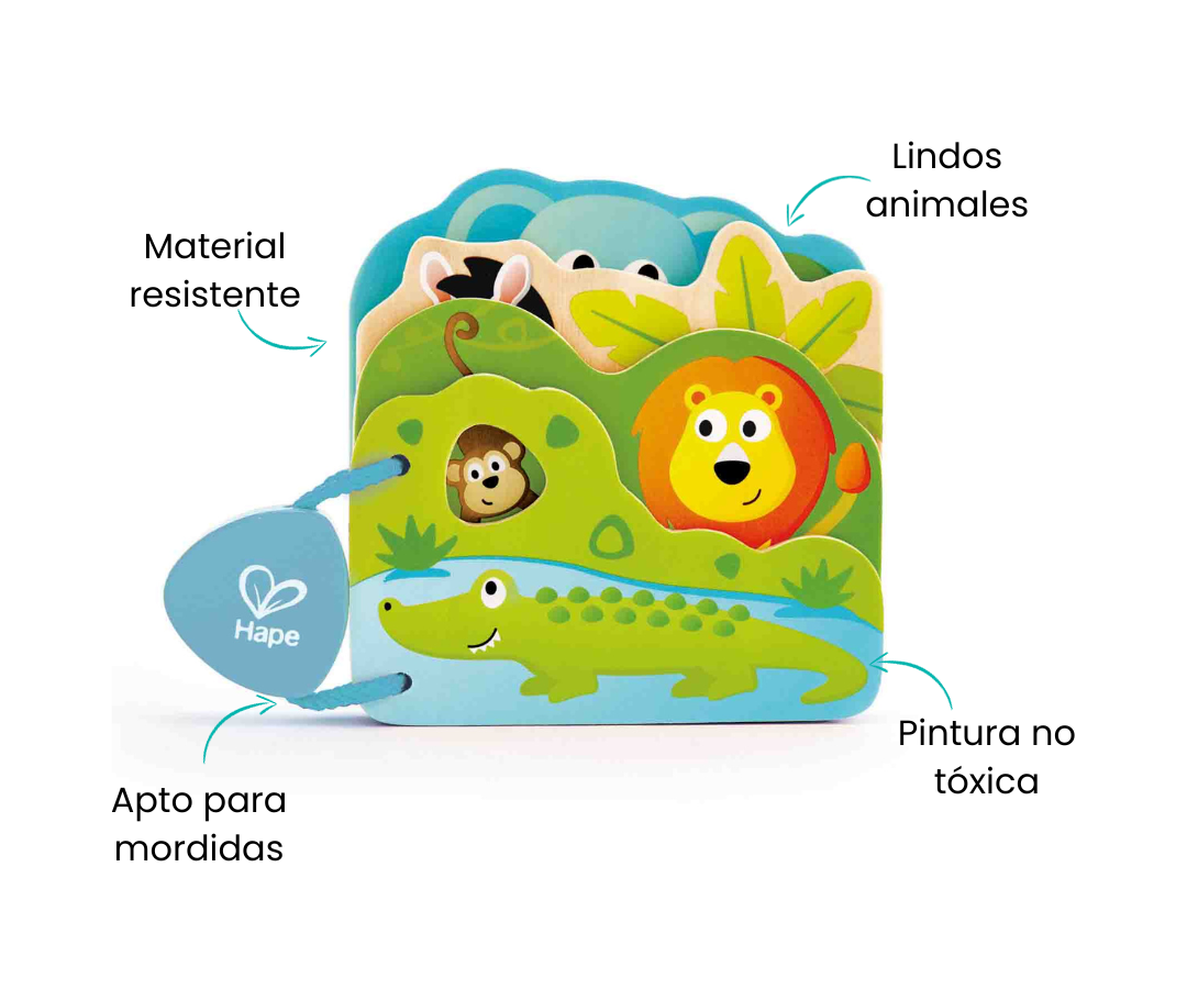 Fabricado con madera segura para masticar, este libro es la opción perfecta para los pequeños curiosos que adoran explorar el mundo a través de sus sentidos. Las ilustraciones alegres y brillantes en cada página capturan la atención de tu bebé, brindándole una experiencia visual estimulante desde el principio.