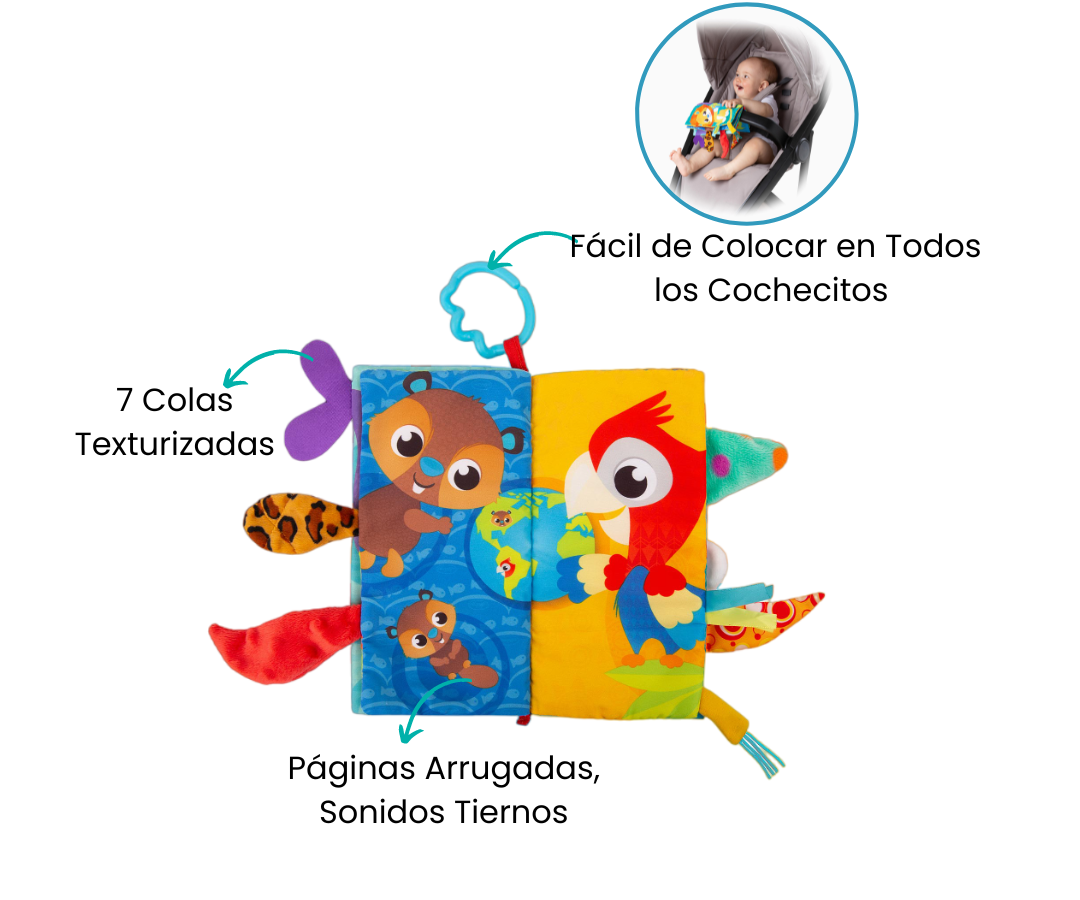 Este libro sensorial es una ventana al mundo para tu bebé. Desarrollará su visión, tacto y audición mientras descubre a quién pertenece cada colorida cola. Con adorables animales de todo el mundo, cada uno presenta su propia textura distintiva. Sumérgete en la diversión educativa con ocho animales únicos y deja que la exploración sensorial comience.