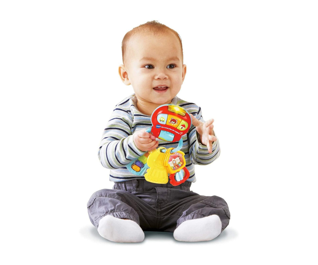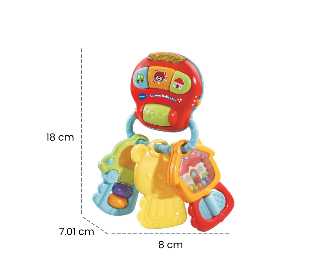 Con el Llavero baby keys de VTech, los peques se lo pasarán en grande agitando las llaves y descubriendo las frases, canciones y efectos de sonido que activan sus botones.
