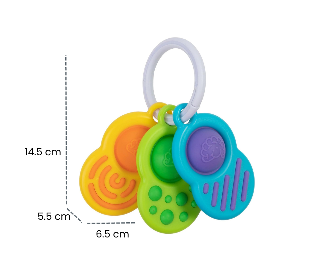 Tres experiencias sensoriales únicas listas para enganchar e ir a cualquier lugar. Este versátil juguete ofrece diversidad táctil con texturas variadas, colores vibrantes y formas intrigantes. Perfecto para el desarrollo sensorial, cada pieza estimula los sentidos y fomenta la exploración táctil. Compacto y fácil de transportar, es ideal para llevar a cualquier parte y mantener a los pequeños entretenidos mientras desarrollan habilidades motoras finas.