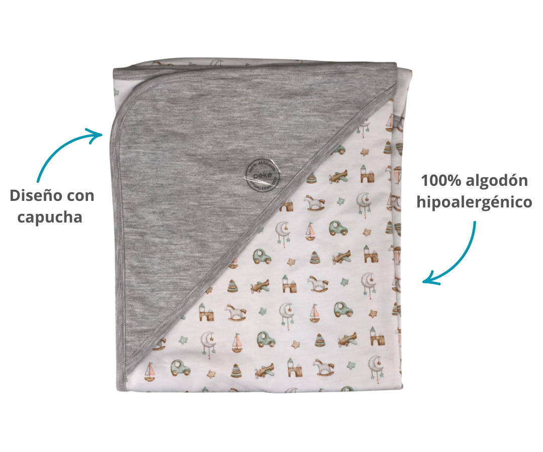 - Diseño con Capucha Integrada: La práctica capucha incorporada es perfecta para mantener la cabeza del bebé abrigada y protegida, ya sea después del baño, durante un paseo o simplemente para mayor confort, ofreciendo un calor extra donde más lo necesitan.