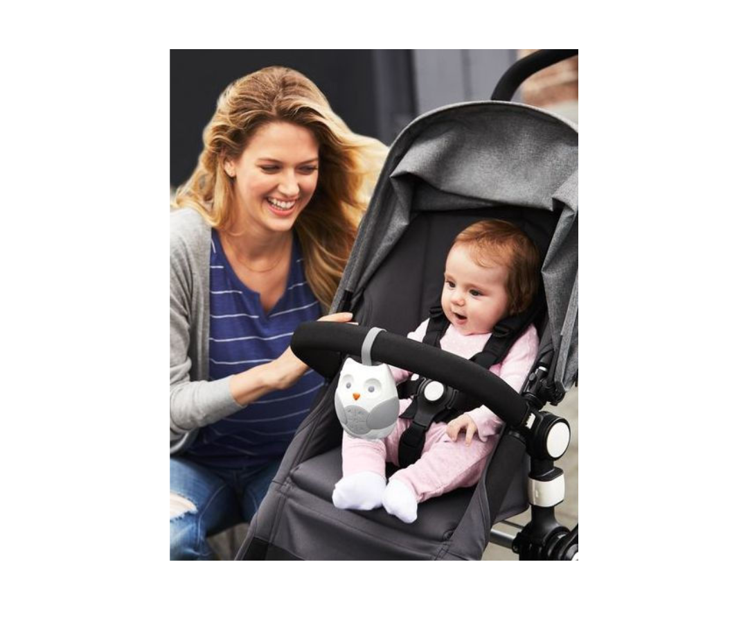 La capacidad de calmar rápidamente a un bebé inquieto es una necesidad importante. Los padres quieren tener la libertad de sacar al bebé fuera de casa sin estresarse; una opción que ayudará a convertir los llantos en sonrisas, manteniendo al mismo tiempo la misma estética genial que el resto de su equipo. Ofreciendo un diseño de búho moderno y amigable, el chupete portátil Stroll & Go de Skip Hop presenta dos tranquilos sonidos de la naturaleza y dos canciones de cuna, así como tres configuraciones de temporizador para una variedad de opciones. Utilice la correa de silicona para sujetarlo al cochecito o al asiento del automóvil y cree un ambiente de sueño relajante para el bebé, esté donde esté.