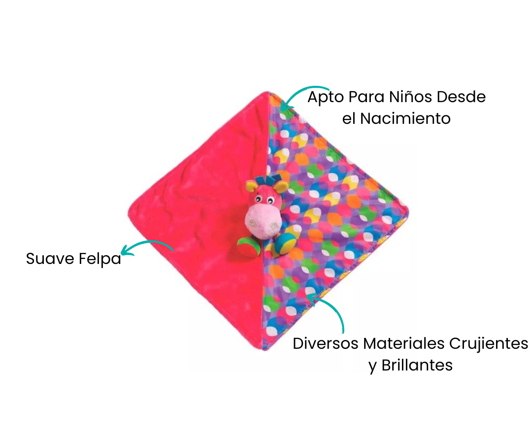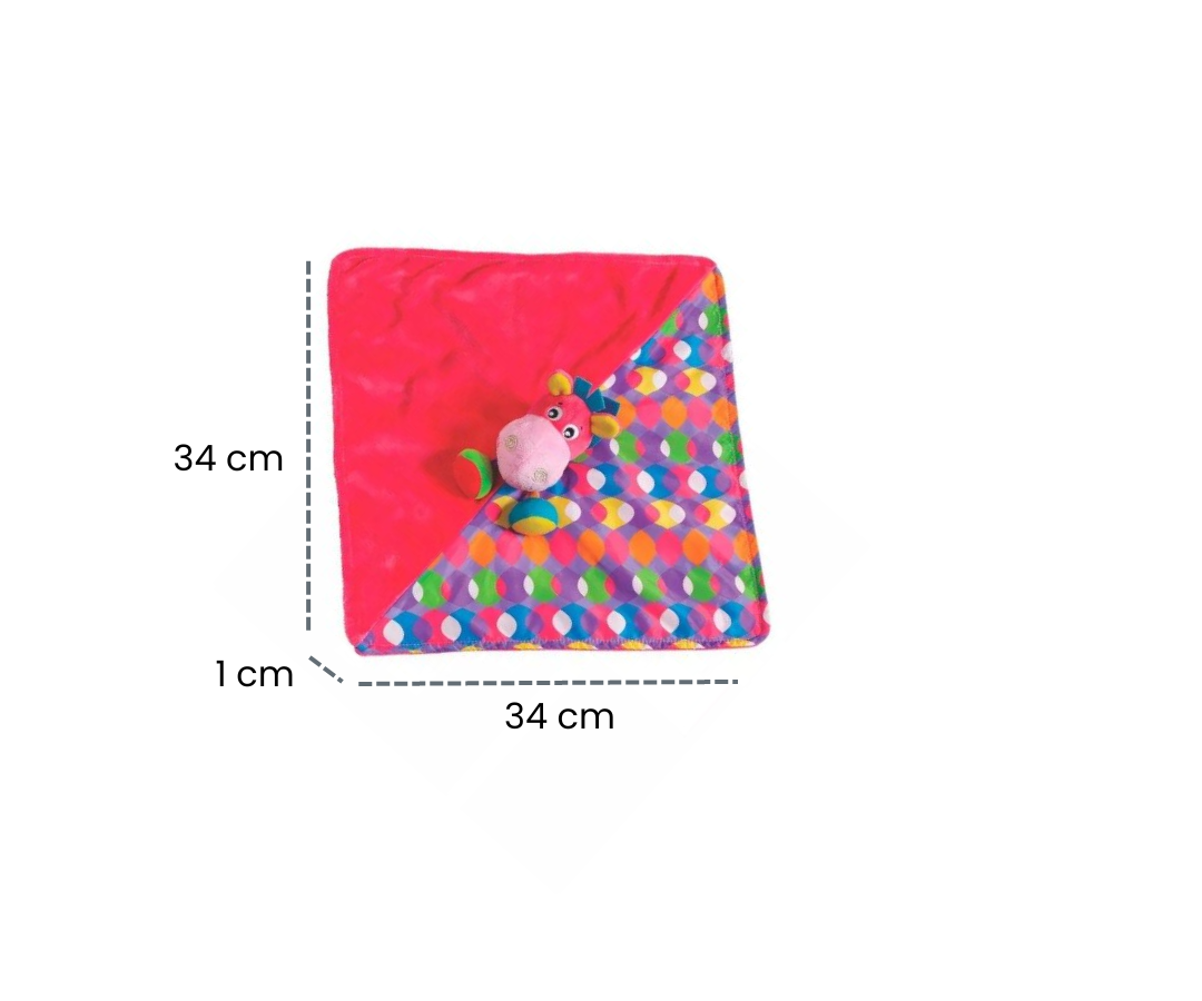 La tierna cabeza de peluche de el burro asoma desde la manta, creando un adorable peluche para niños desde el nacimiento. Esta Masticador Cobija Rosa no solo ofrece calidez y suavidad, sino que también presenta un compañero peludo que acompañará a tu pequeño en sus momentos de descanso y juego. ¡Descubre la dulzura y la ternura en cada rincón de esta encantadora manta!