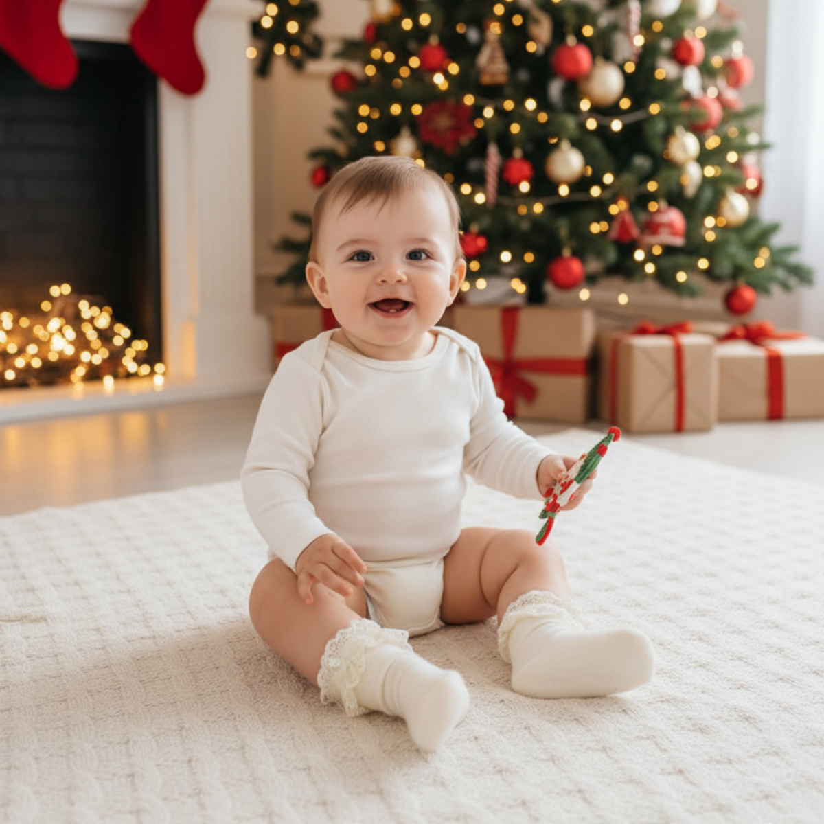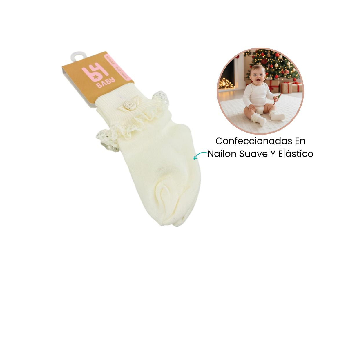 Estas encantadoras medias para bebé añaden un aire tierno y elegante a cualquier atuendo. Perfectas para ocasiones especiales o para dar un toque refinado al look diario, su delicado encaje y pequeño lazo decorativo las convierten en el accesorio ideal para acompañar vestidos, enterizos o conjuntos festivos.