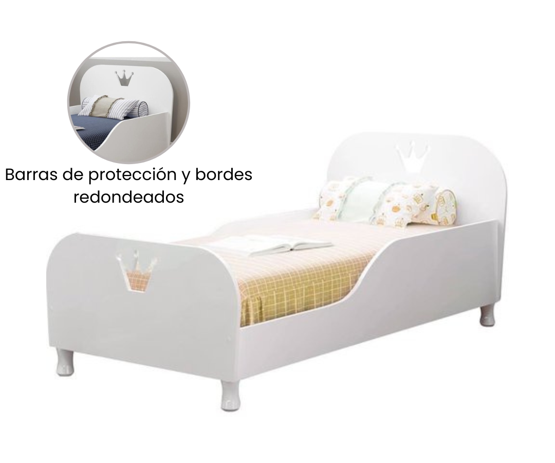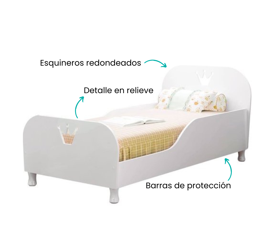 Equipada con barras de protección lateral para garantizar la seguridad mientras descansas, así como esquineros redondeados que añaden un toque de suavidad y estilo a su diseño. Además, cuenta con un detalle en bajo relieve que aporta un toque de elegancia adicional, convirtiendo tu espacio de descanso en un lugar verdaderamente acogedor y estilizado.