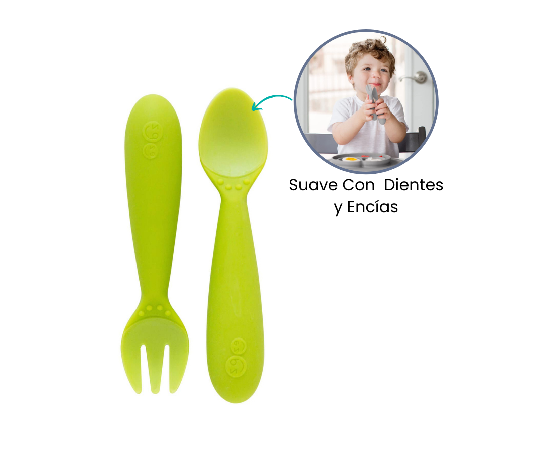 Los Mini Cubiertos EZPZ son el compañero perfecto para los niños pequeños que están aprendiendo a alimentarse por sí mismos. Con la Mini Spoon para recoger y el Mini Fork para perforar alimentos, estos cubiertos están diseñados específicamente para adaptarse a sus manos y habilidades en desarrollo.