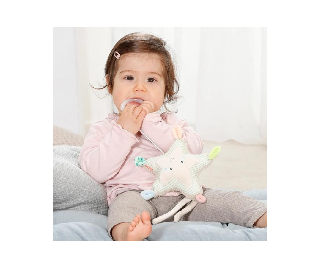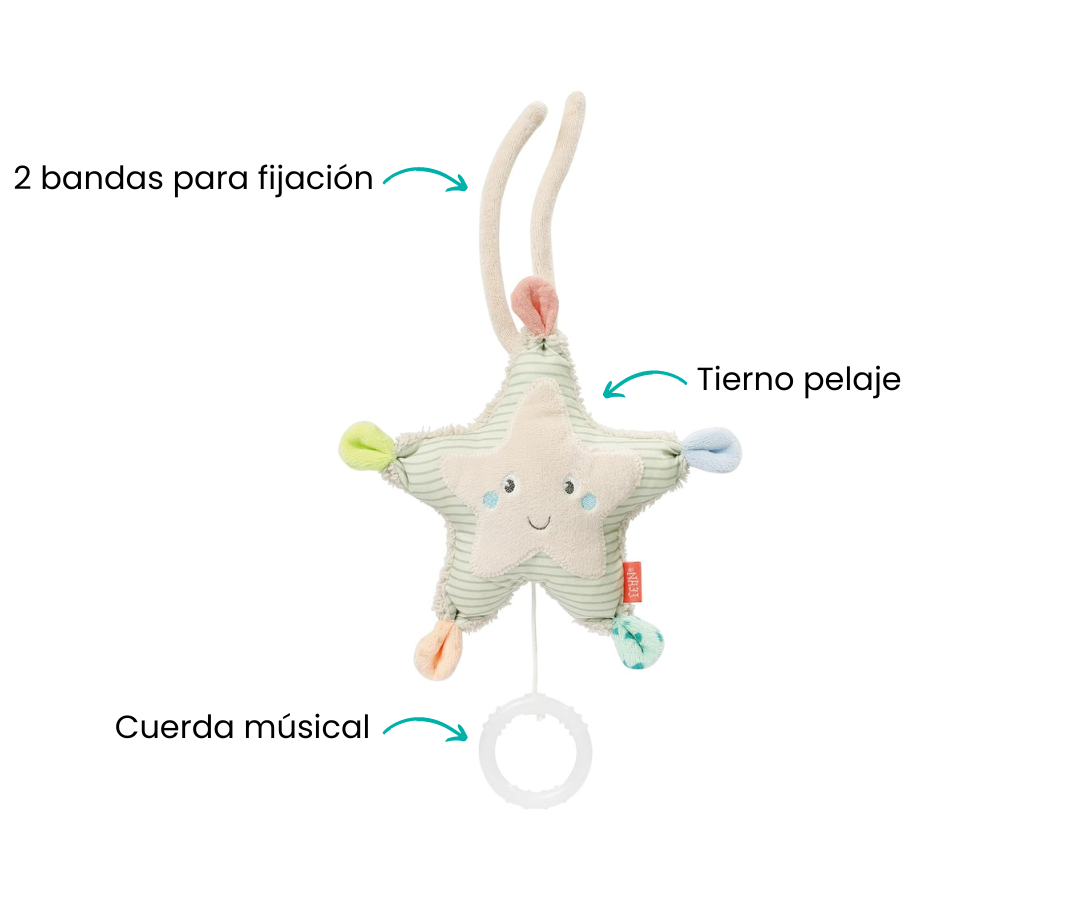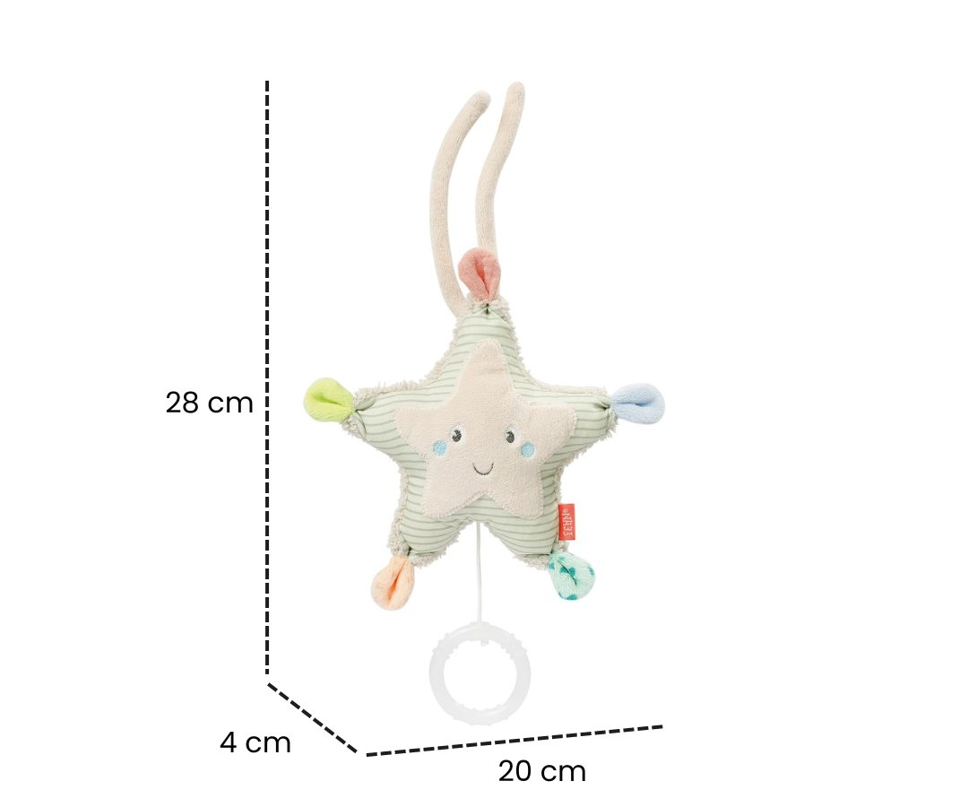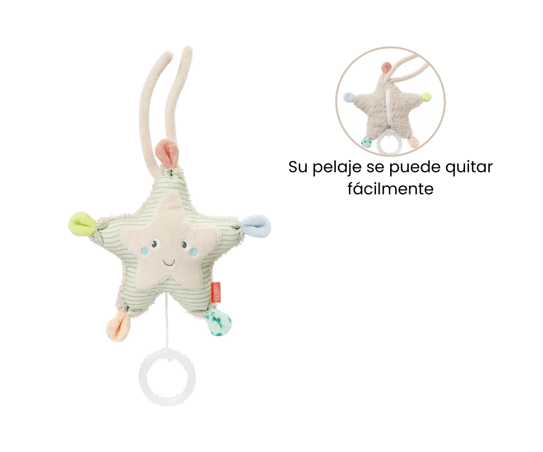 La estrella con su tierno pelaje se convierte en el compañero perfecto para tu bebé desde el primer momento. La melodía de cuna es "Weißt du wieviel Sternlein stehen" que invita a abrazar y amar, mientras acuna suavemente al bebé para dormir.