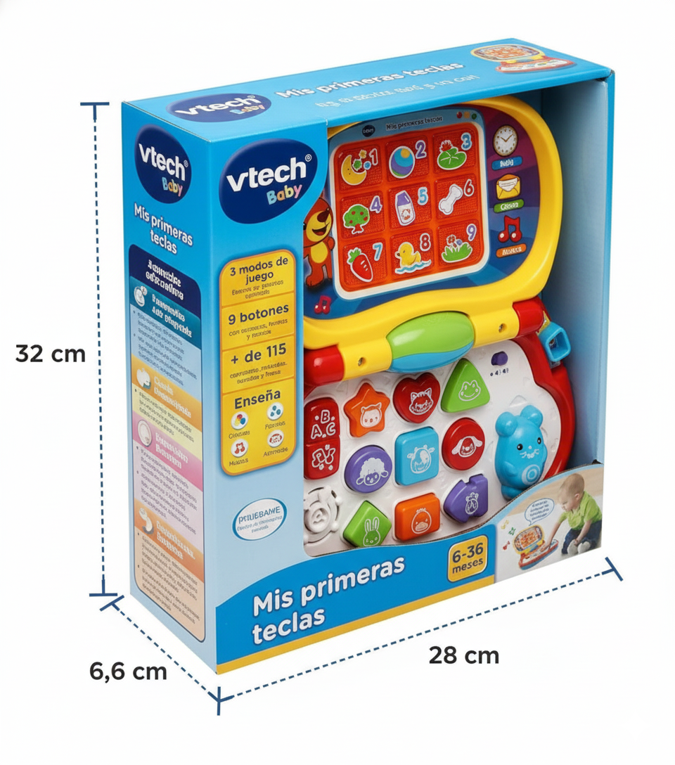 El ordenador interactivo infantil “Mis Primeras Teclas” es una herramienta educativa diseñada para estimular el aprendizaje y la diversión desde los primeros años. Con 3 modos de juego, los niños pueden descubrir el mundo de los animales, identificar formas y disfrutar de la música mediante sonidos y melodías envolventes. Sus colores vibrantes y efectos interactivos capturan la atención del pequeño, promoviendo el desarrollo cognitivo y la estimulación sensorial. Un compañero ideal para aprender jugando cada día.