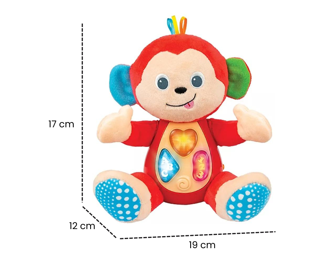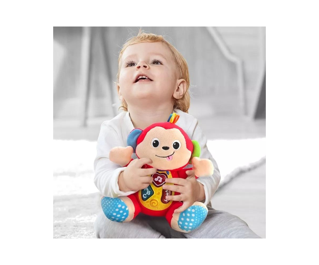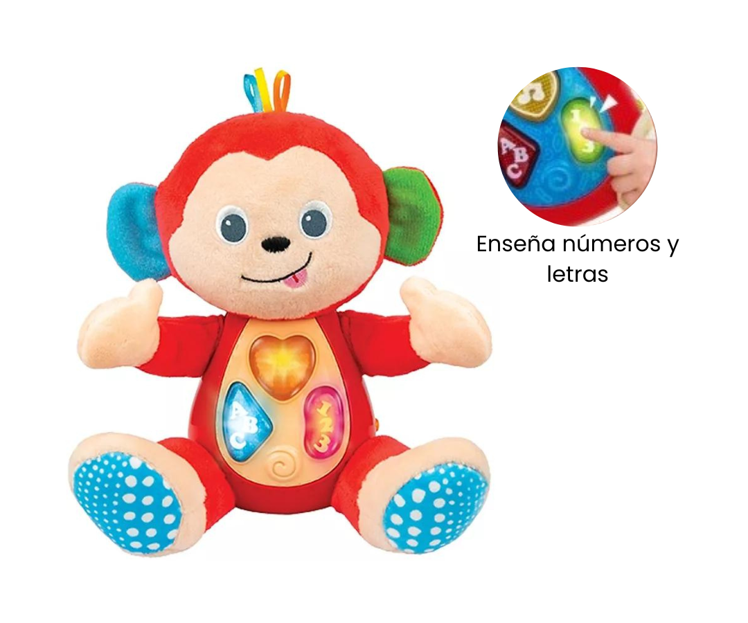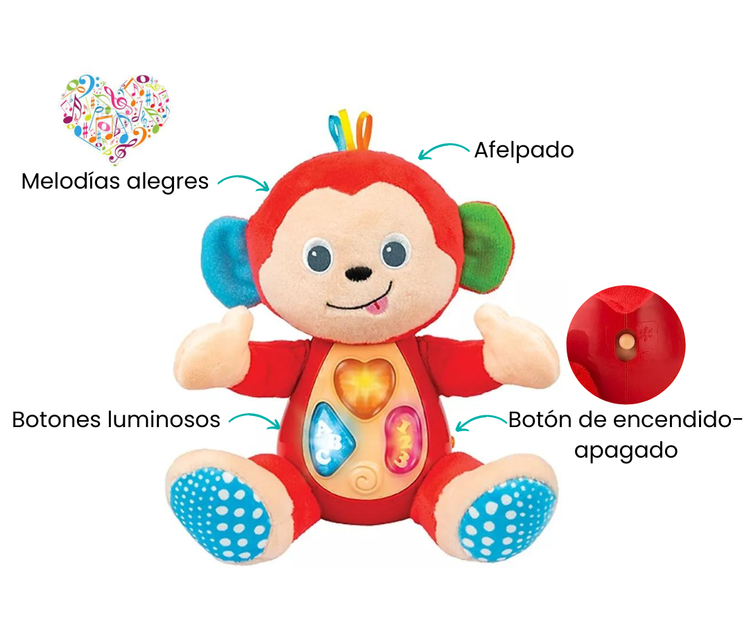 Diviértete junto a tu pequeño con el mono interactivo con luz y sonido, apto para cantar, jugar y aprender. Gracias a su diseño con 3 botones luminosos y efectos de sonido, podrás desarrollar en tu bebé la curiosidad y estimular su sistema sensorial (vista, tacto, oído).
