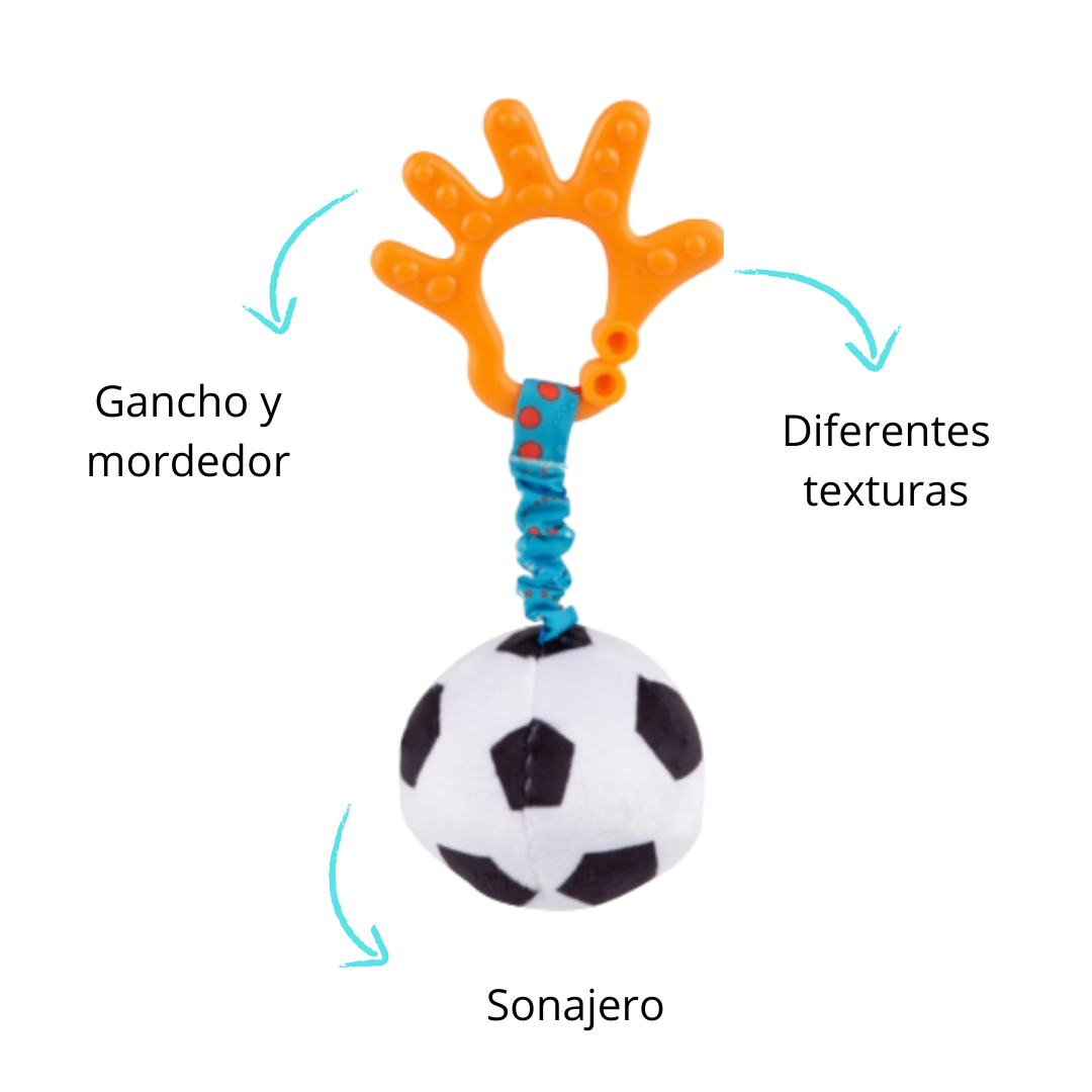 La pelota deportiva Playgro Baby son un juguete esencial para el cochecito de los pequeños aficionados al deporte. Sus pinzas texturizadas se fijan fácilmente a cochecitos, sillas de coche y cápsulas, y son el mordedor ideal para llevar a cualquier parte y mantener sus encías felices
