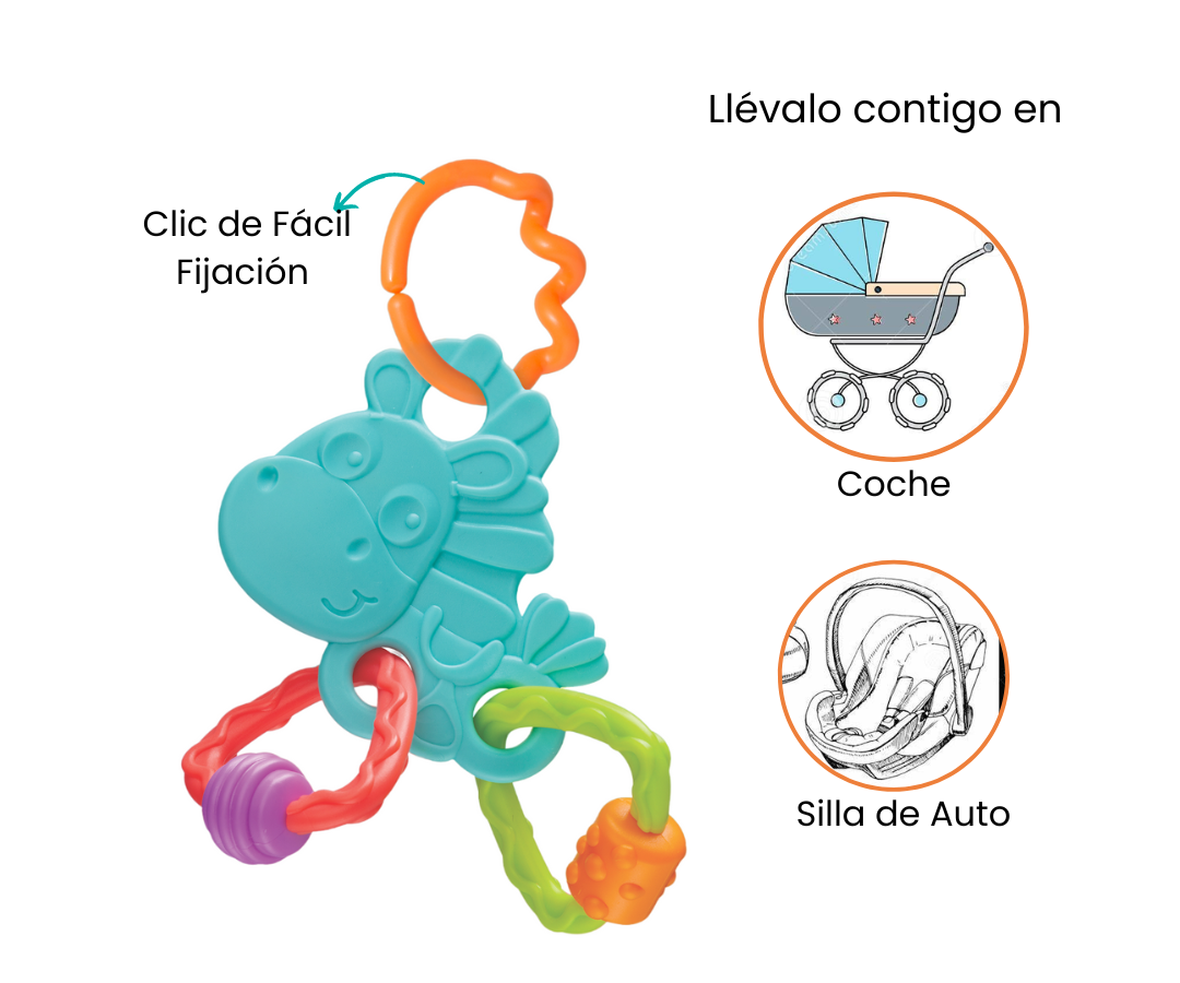 Estamos emocionados de presentarte el Mordedor Clopette, que trae consigo la encantadora figura de Hotte Hüh, uno de los personajes más queridos. Este mordedor no solo ofrece alivio para las encías del bebé, sino que también proporciona una experiencia táctil y visual cautivadora.