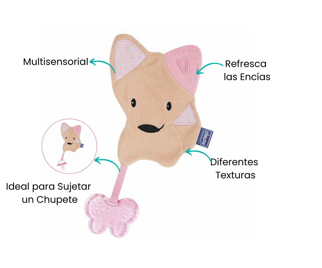 Este versátil compañero ofrece un diseño único 3 en 1 actúa como mordedor para aliviar las encías irritadas, una goma de mascar para fortalecer los dientes en crecimiento y un juguete divertido para entretener al bebé. Con este mordedor a mano, tu pequeño disfrutará de alivio y diversión durante la fase de dentición, haciendo que este proceso sea más llevadero y agradable para ambos.