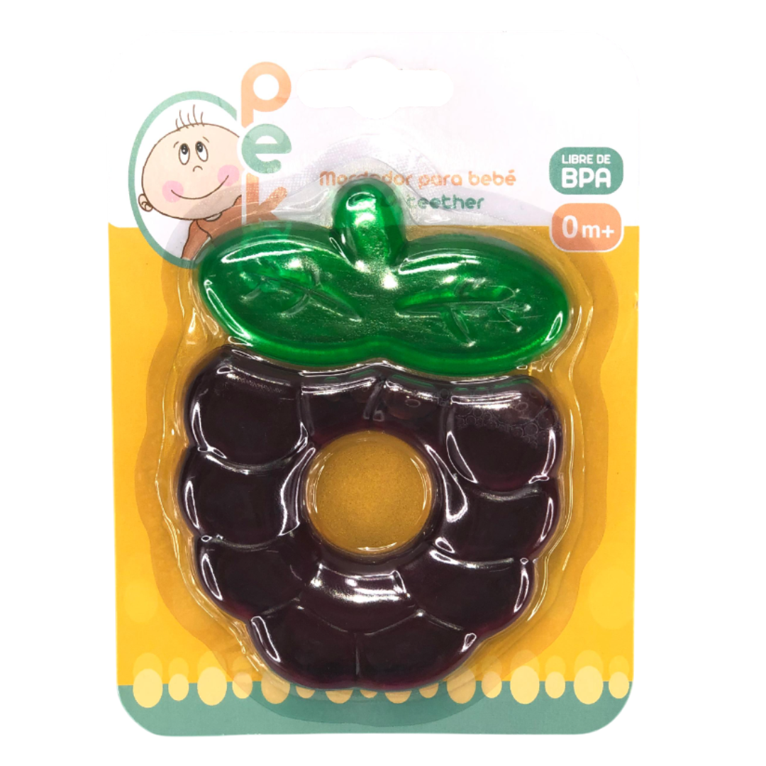 Mordedor apto para enfriar en la nevera, con diseño de fruta, libre de BPA, uso adecuado desde los 0 meses.