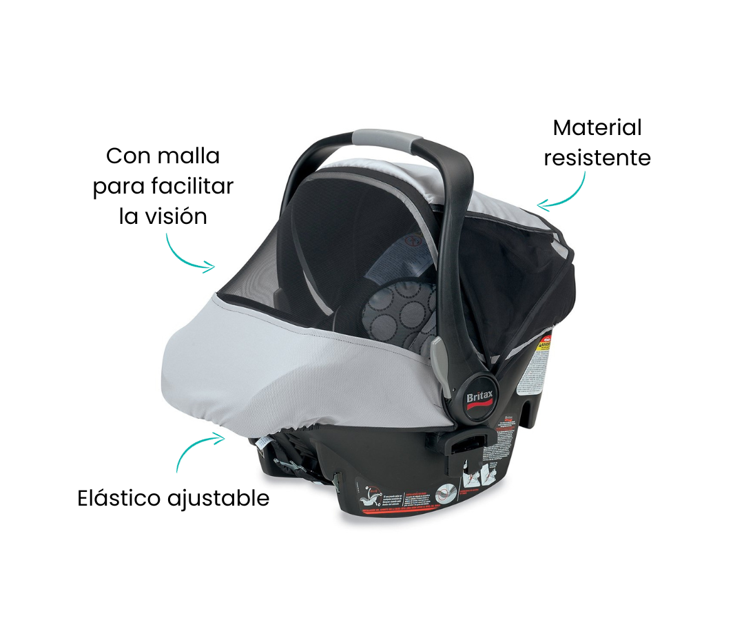 La funda para sol y protección contra insectos para asientos infantiles de automóvil BRITAX ha sido diseñada pensando en la comodidad y seguridad de su pequeño pasajero. Fabricada con un tejido transpirable de alta calidad, esta funda se ajusta perfectamente al asiento infantil, proporcionando una barrera eficaz contra los insectos molestos y los dañinos rayos UV.